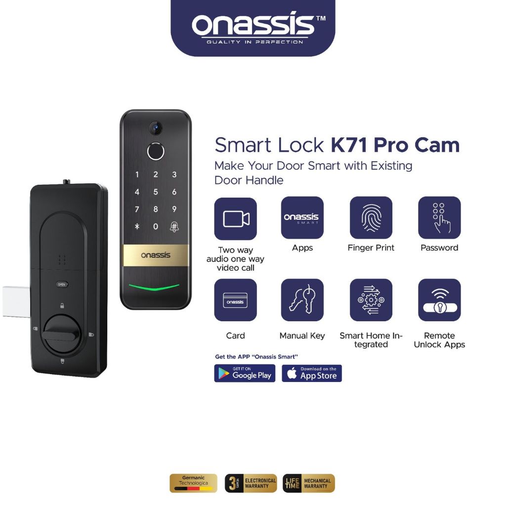 Onassis Smart Lock K71 Pro Cam - Fingerprint | RFID Card | Apps