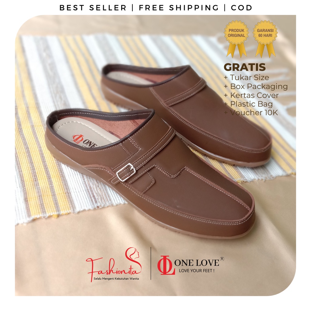 One Love Sepatu Karet Flat Branded Premium Warna Coklat Flatshoes Original Slip Untuk Kerja Formal Atau Santai