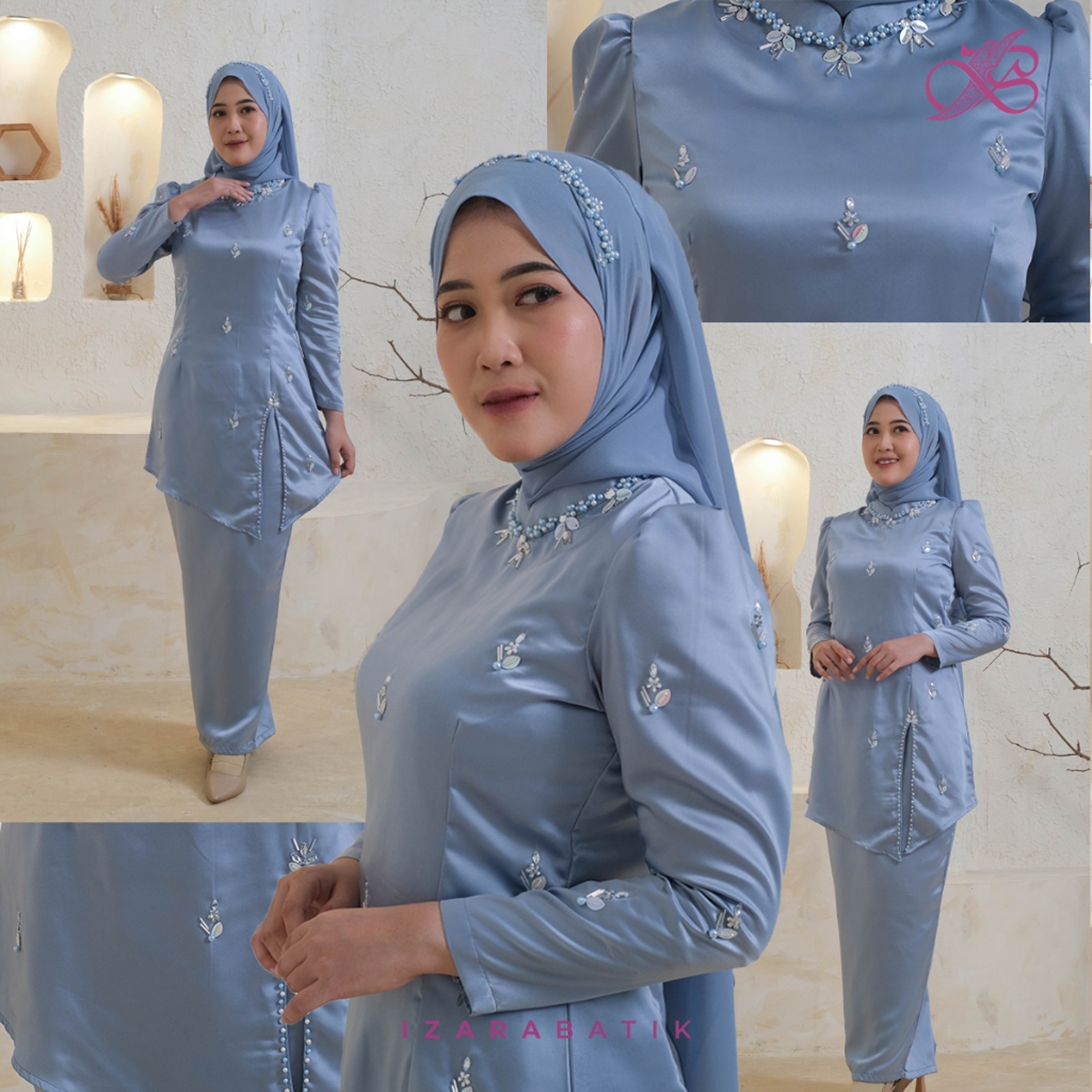 IZARABATIK - One Set Malay Series - Baju Kurung Malay Modern Melayu Malaysia Baju Dress Pesta Kondangan Seragam Bridesmaid Setelan Wanita Full Payet