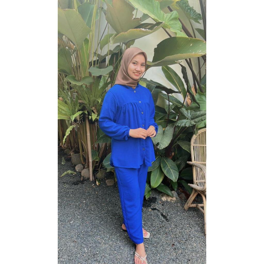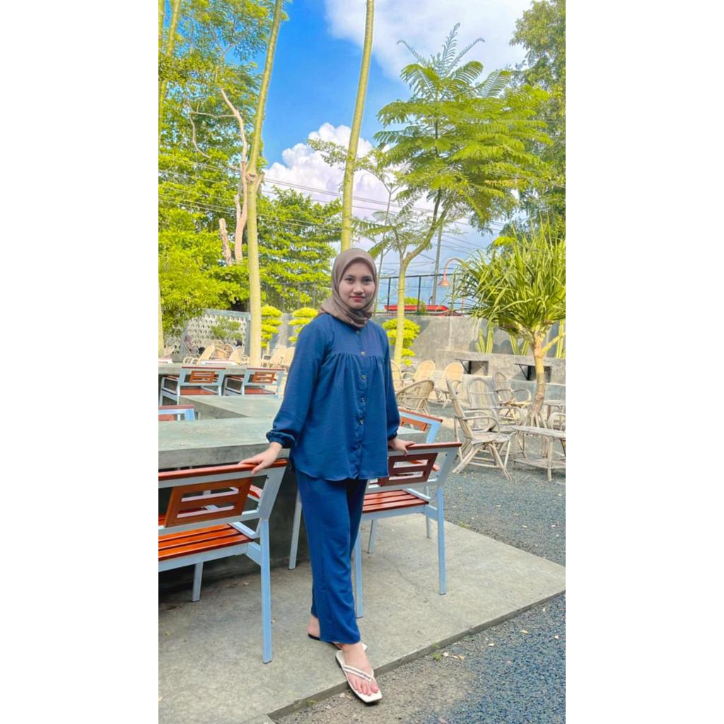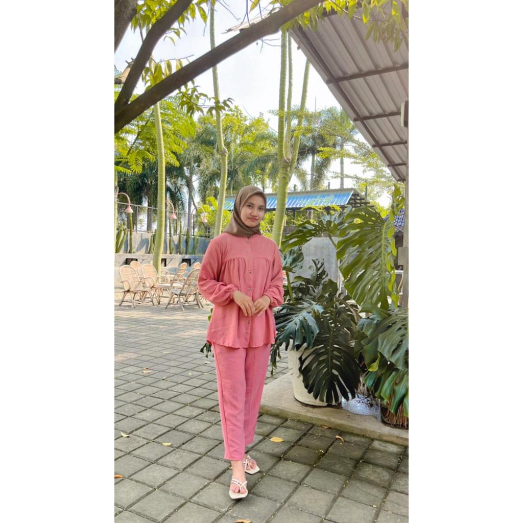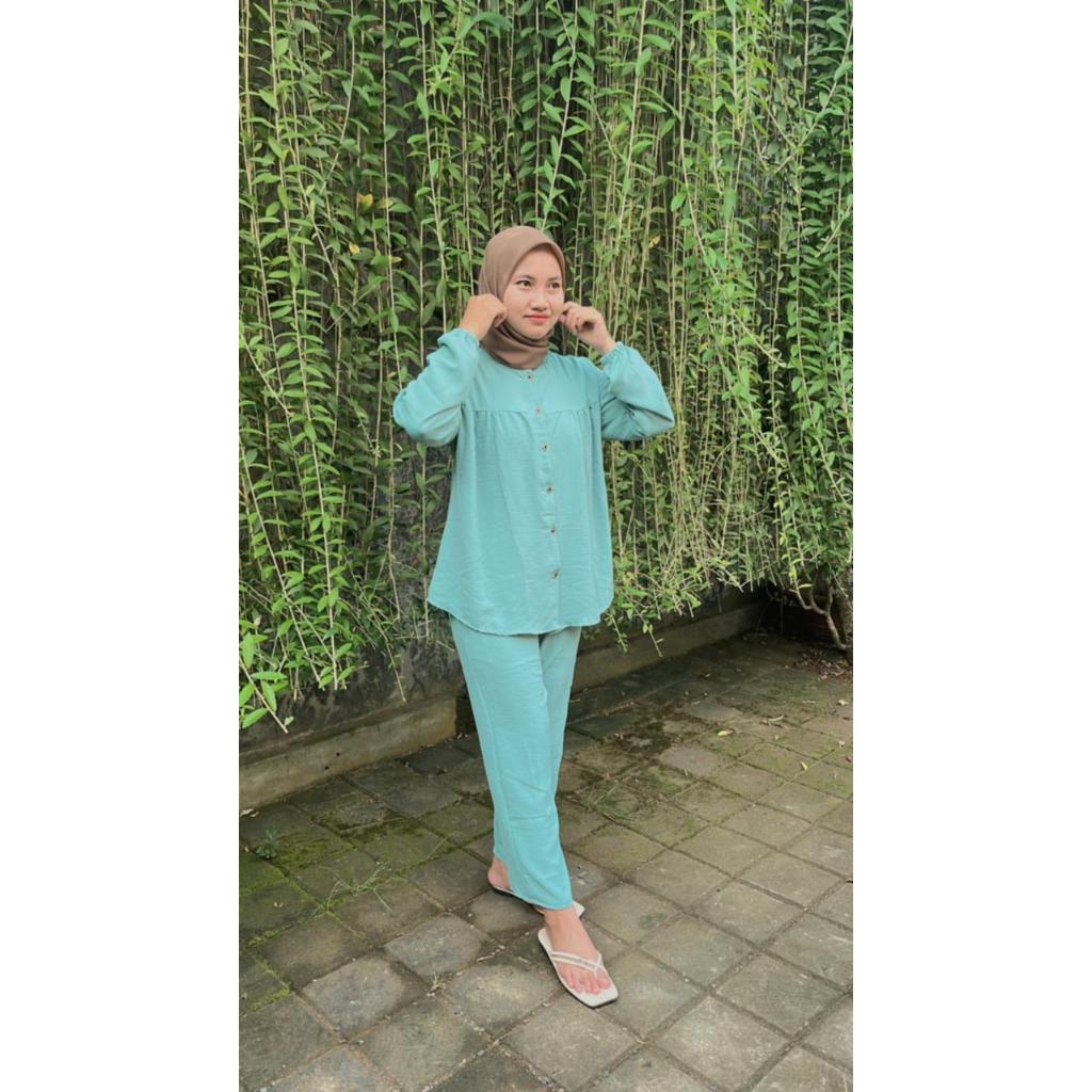 One Set Rayon Crinkle Airflow Premium Jumbo Busui Friendly - Baju Setelan Wanita Kekinian Terbaru