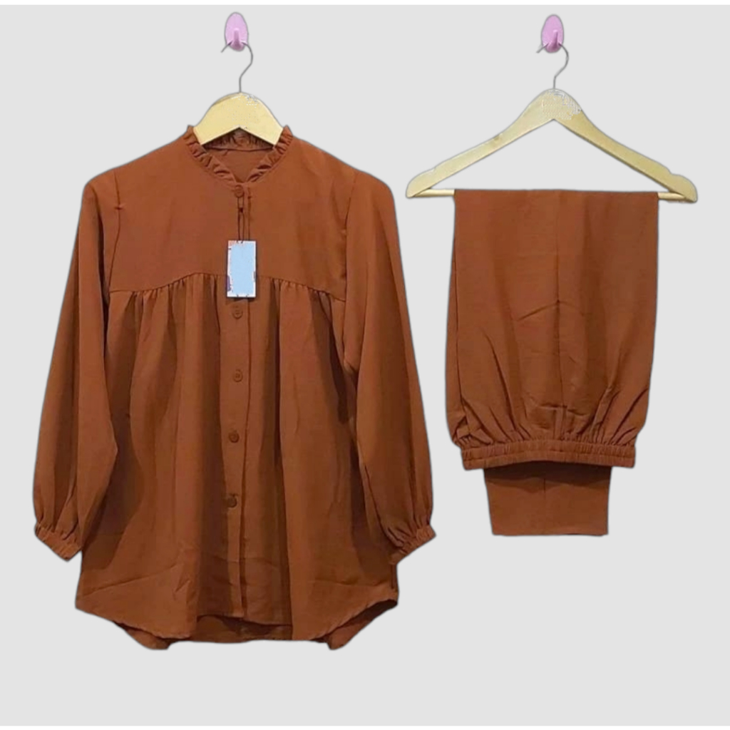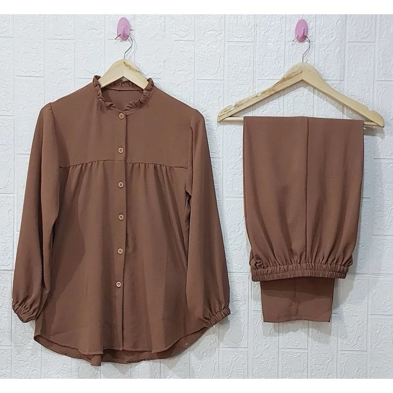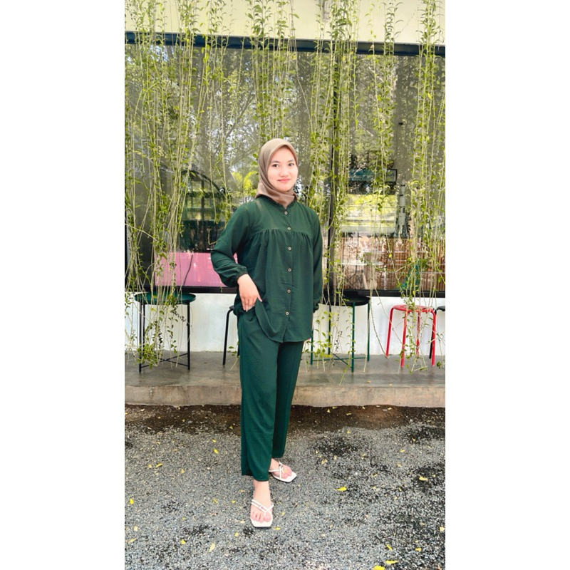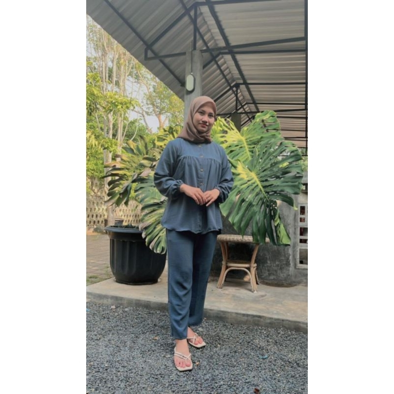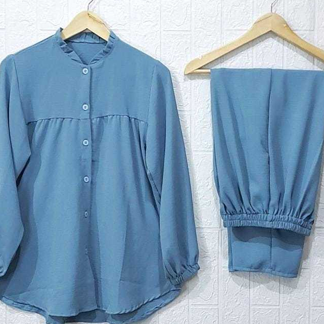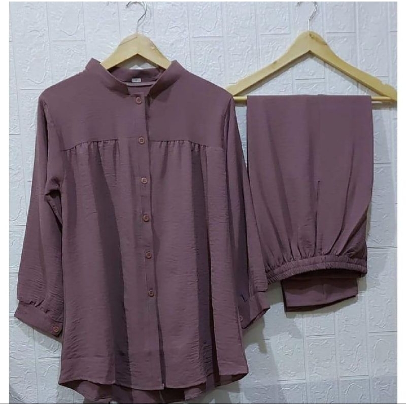 One Set Rayon Crinkle Airflow Premium Jumbo Busui Friendly - Baju Setelan Wanita Kekinian Terbaru
