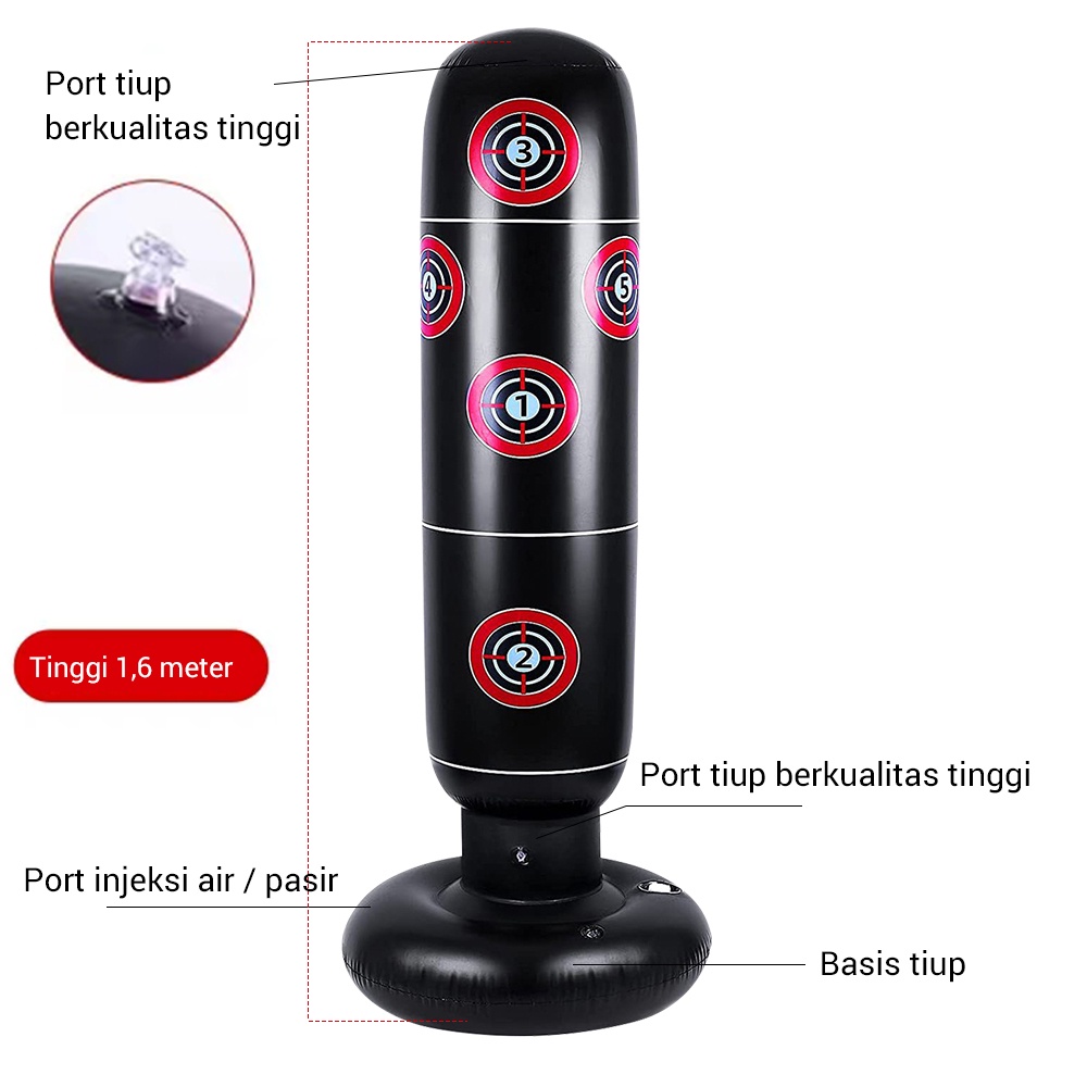 OneTwoFit Alat samsak Tinju 160 Cm Tinju Berdiri Standing Dewasa Model Tiup Bahan PVC Untuk Latihan