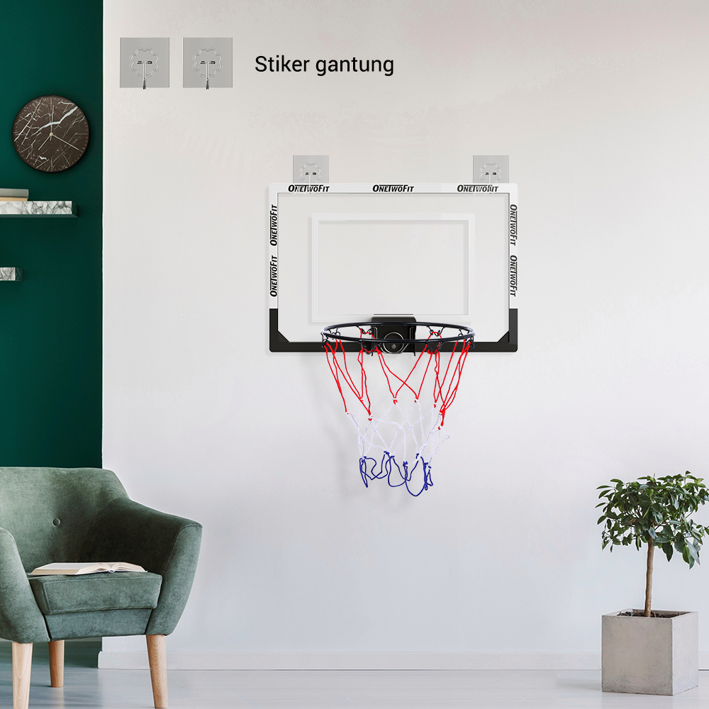 OneTwoFit Keranjang Basket Lipat Portable Mini Stand Basket Ball Outdoor Pompa Bola 45x30cm Tidak Meninju Dinding Dilengkapi Stiker Gantung & Pengait Kusen Pintu