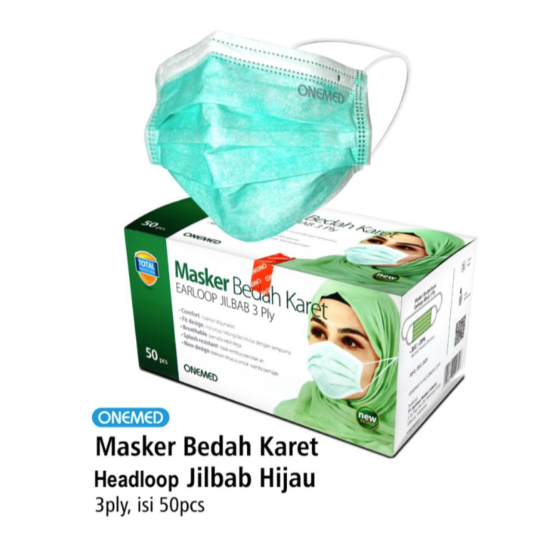 Onemed Masker Hijab Medis 3 ply Hijab Premium &Masker Earloop (Non-Hijab) 3ply Masker Medis Anak