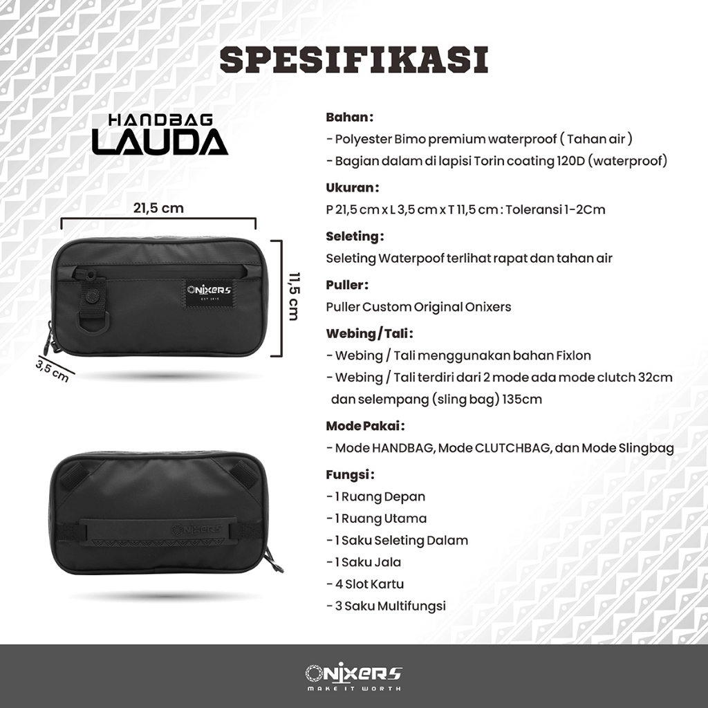 Onixers LAUDA Clutch Bag Tas Tangan Pria