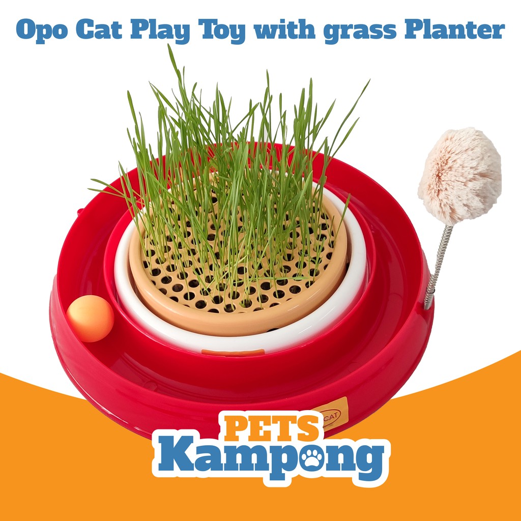 Opo Cat - Play Toy with grass planter Mainan kucing interaktif 3 in 1 tanam rumput kucing