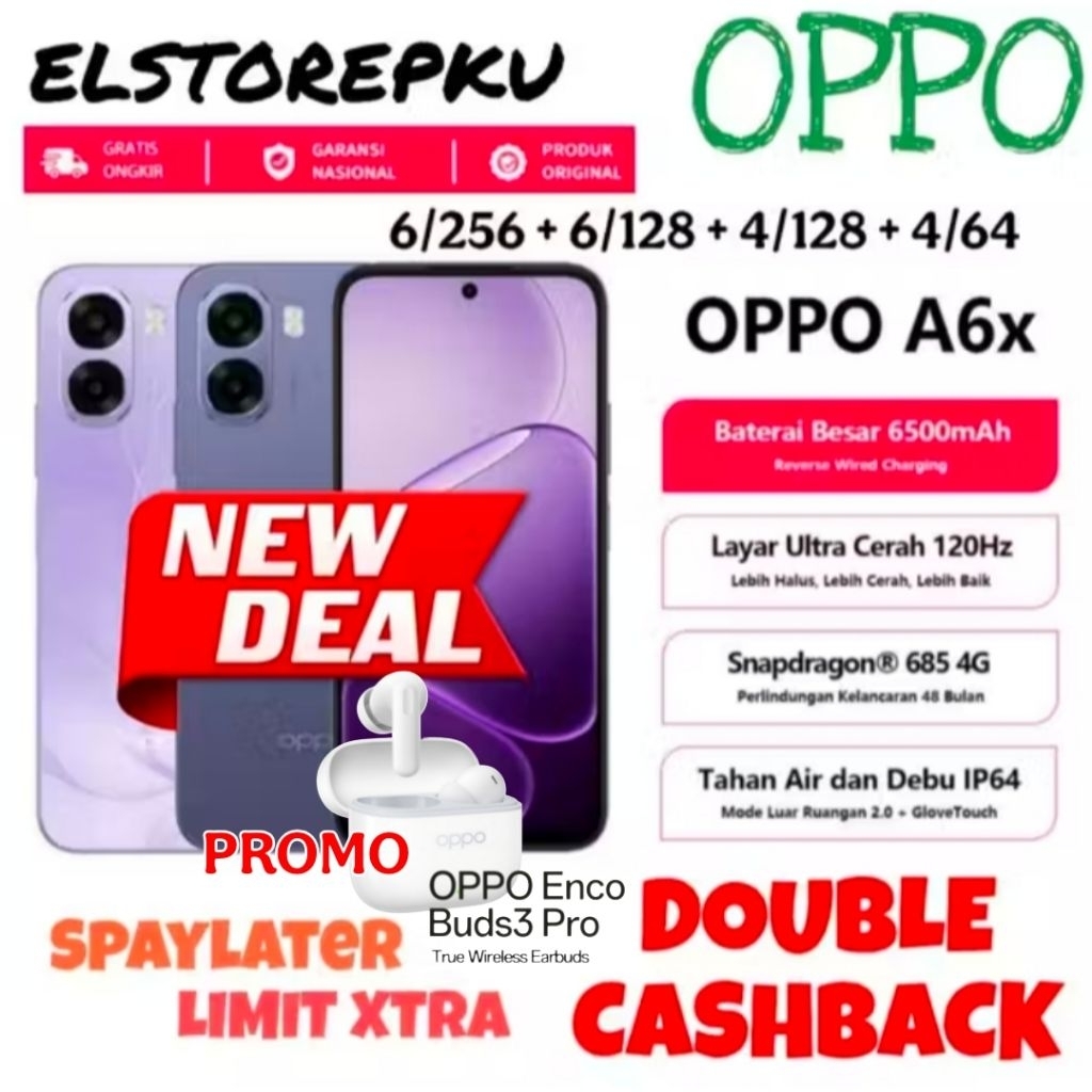 Oppo A6x 6/256 + 4/64 Resmi Snapdragon 685 Layar 120Hz Battery 6500mAh UFS 2.2 IP64 A3x 4/128 6/128