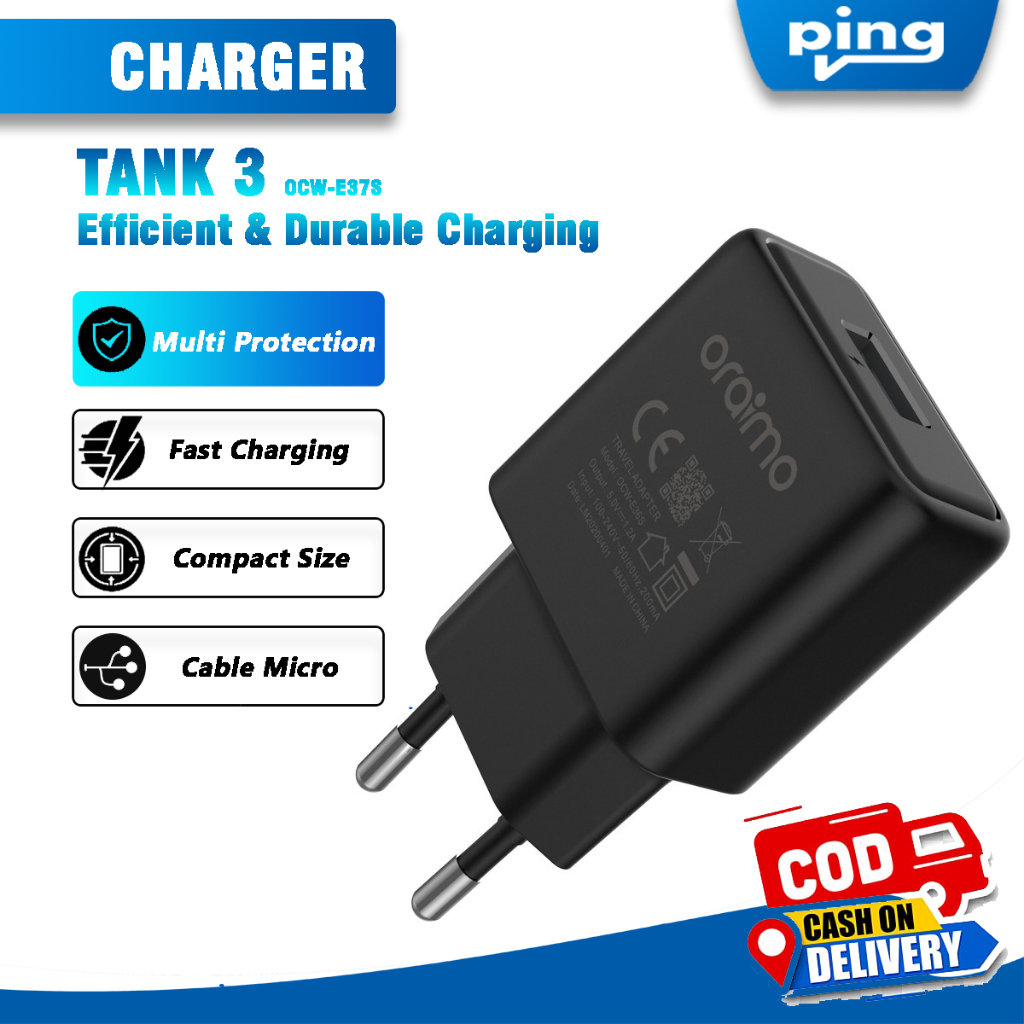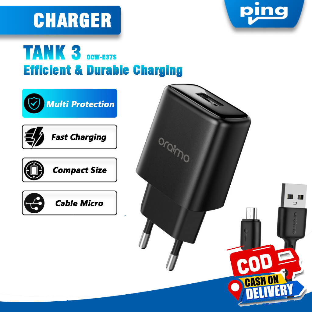 Oraimo Fast Charging Wall Charger OCW-E37SP + Kabel Micro USB - 5V 1A - Ping Cell Store