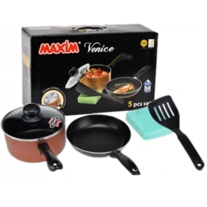 Maxim Venice Set (Panci 17cm+Tutup Kaca+Wajan 20cm+Spatula+Sponge)