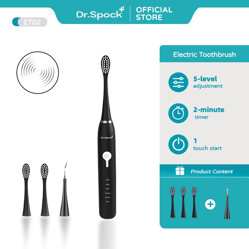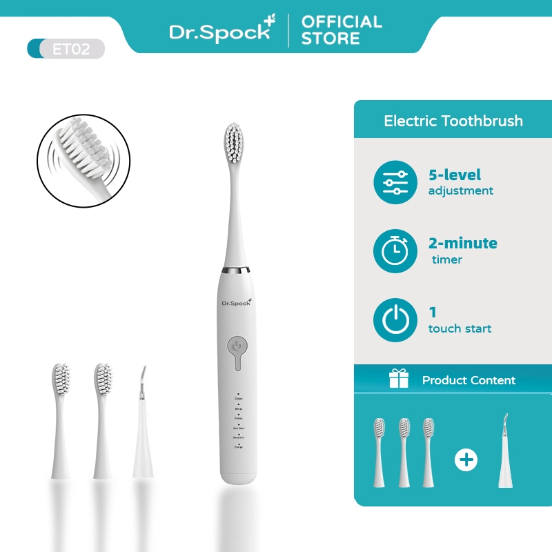 Dr.Spock Sikat Gigi Elektrik Ultrasonic - 5 Mode Pembersihan, Baterai Tahan Lama, Mudah Dibersihkan