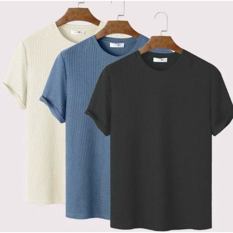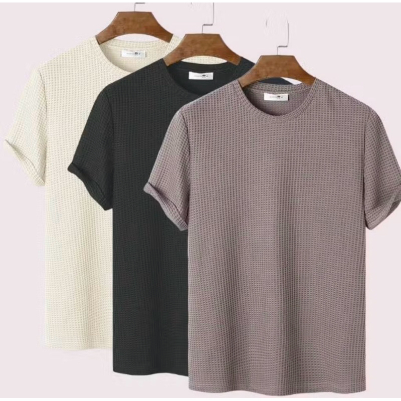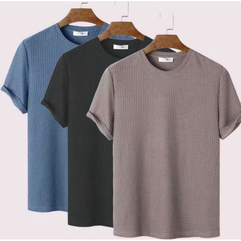 Paket 3pcs Kaos Waffle Knit Polos Lengan Pendek / Kaos Polos Waffle Lengan Pendek