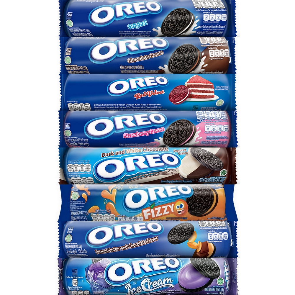 Oreo Biskuit Sandwich 123.5gr - Original Vanilla Chocolate Strawberry Red Velvet IceCream Fizzy