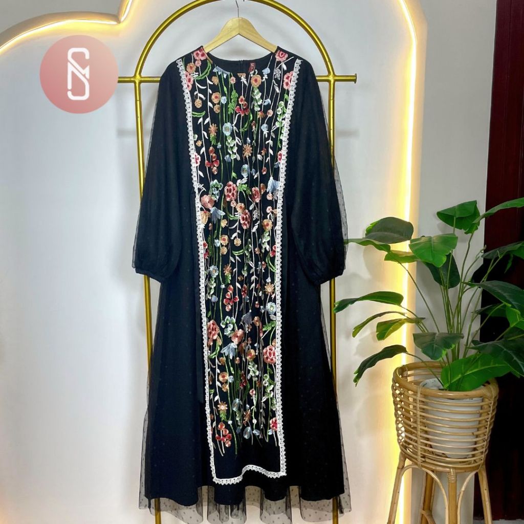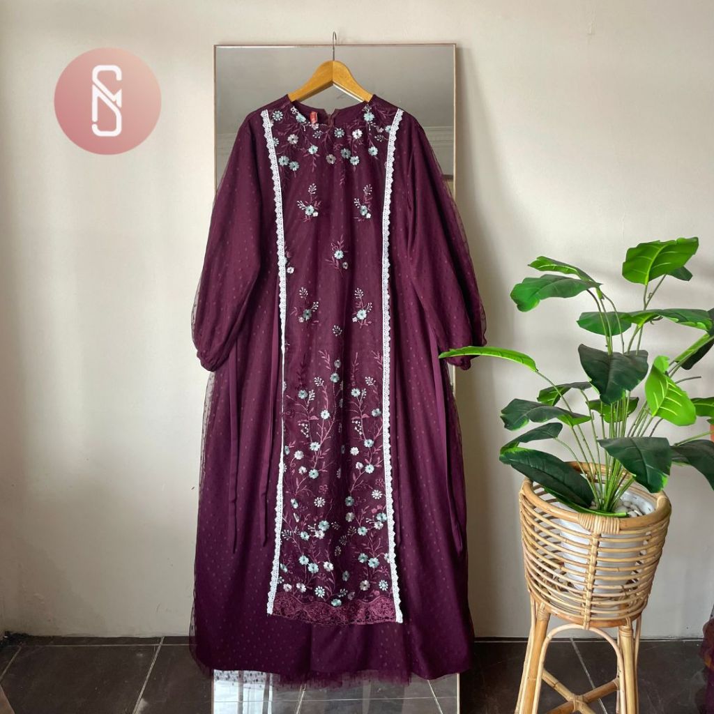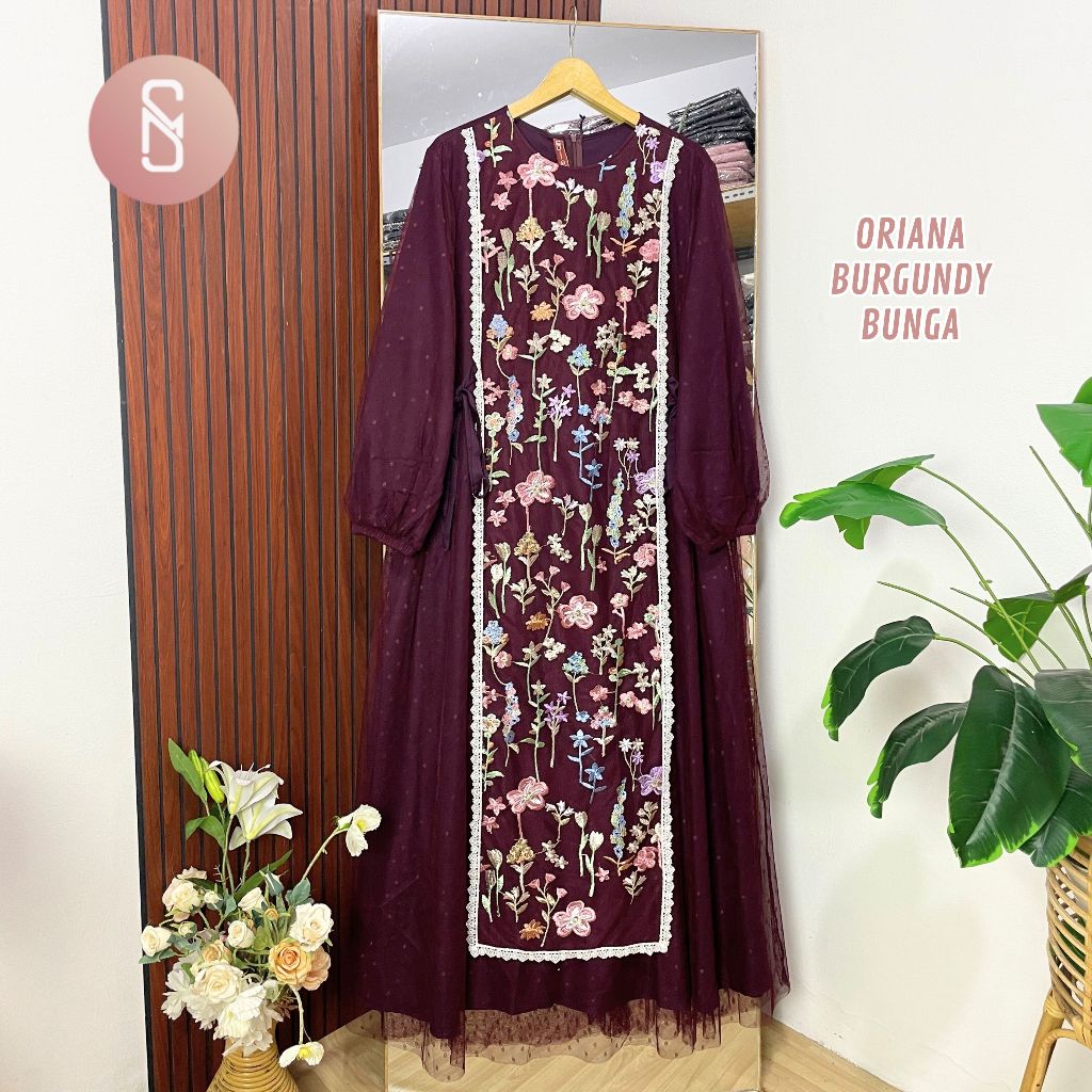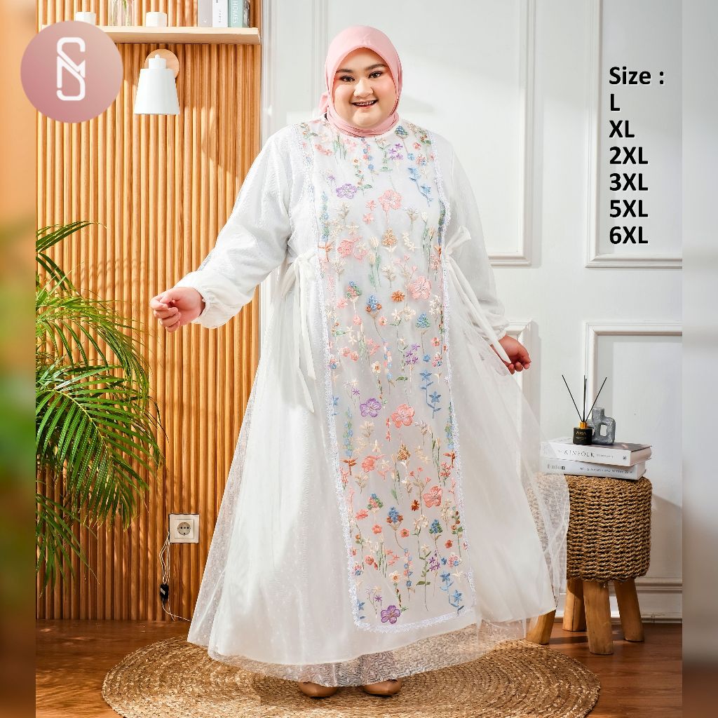 Oriana New Myshawl Gamis Jumbo Tille Motif Kasual Kondangan Wisuda Kekinian Big Size Brukat Bunga Jumbo