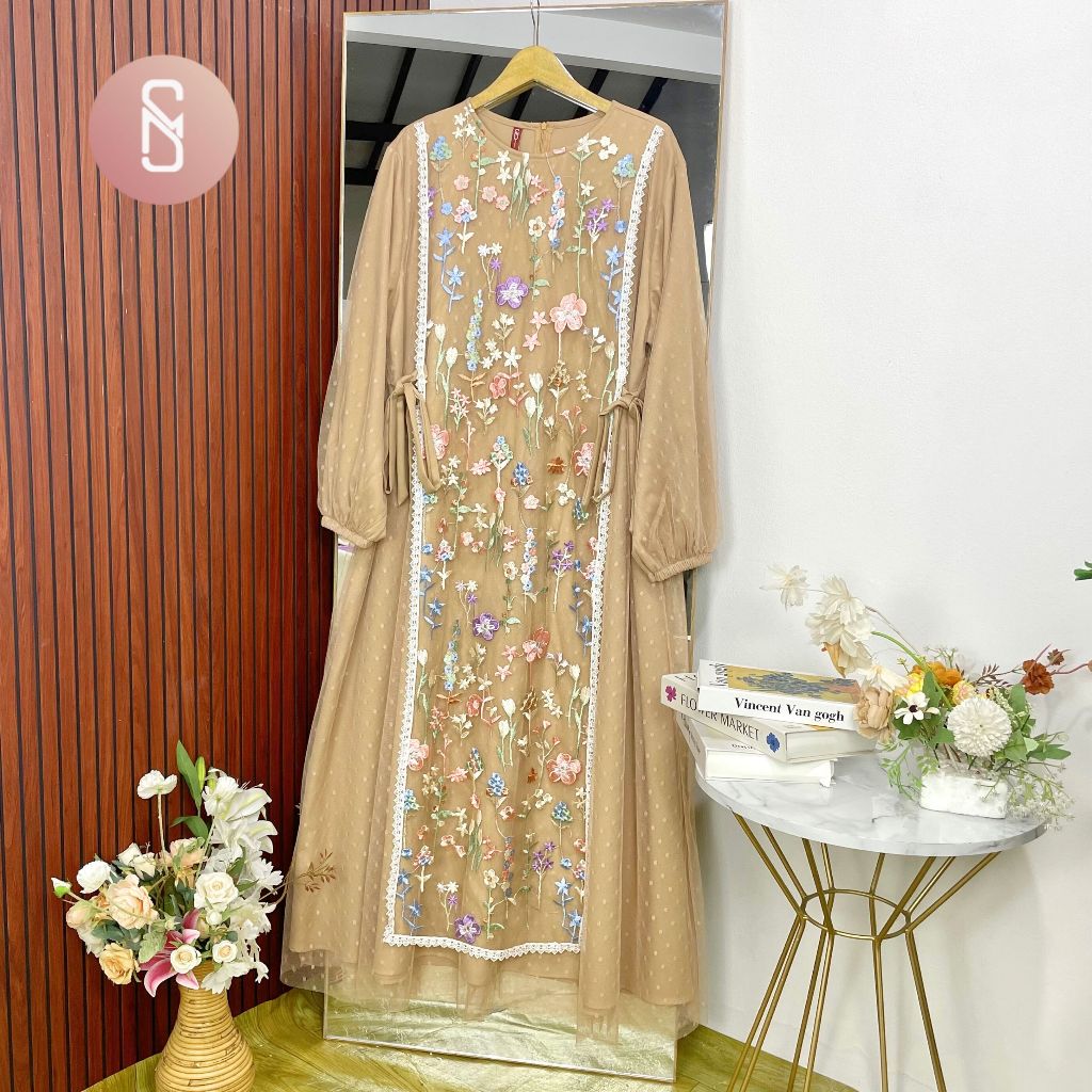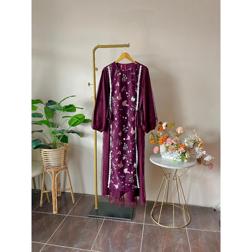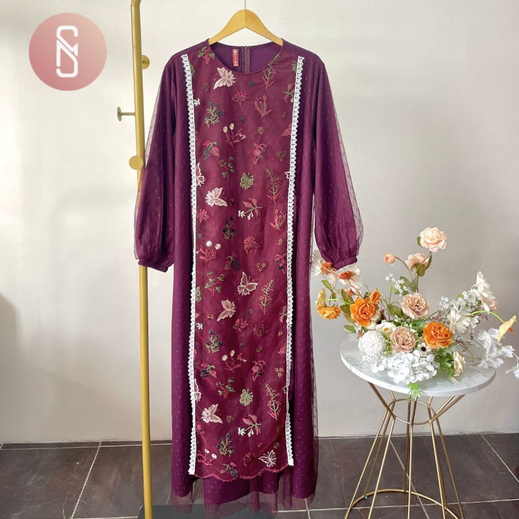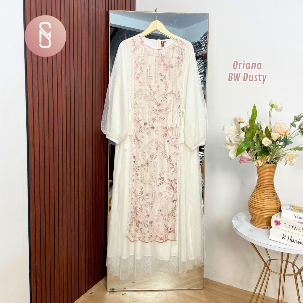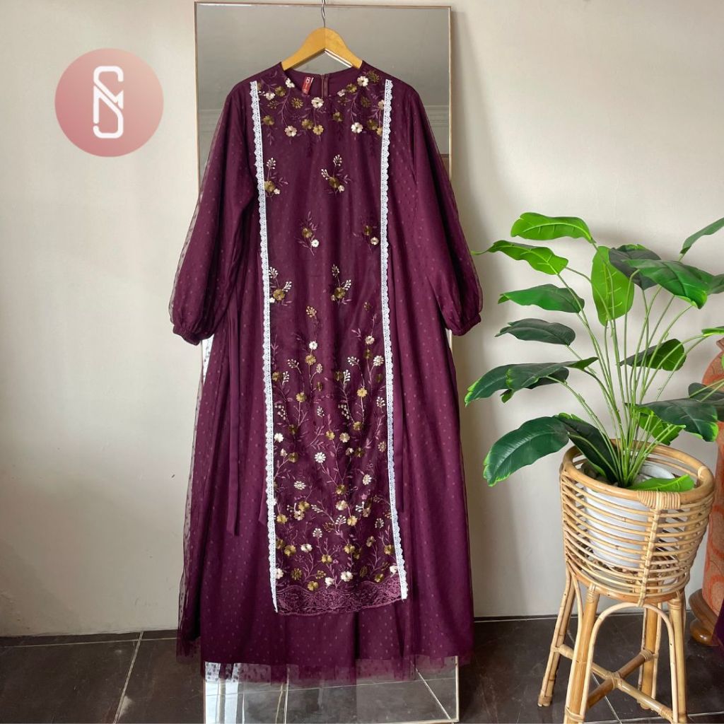 Oriana New Myshawl Gamis Jumbo Tille Motif Kasual Kondangan Wisuda Kekinian Big Size Brukat Bunga Jumbo