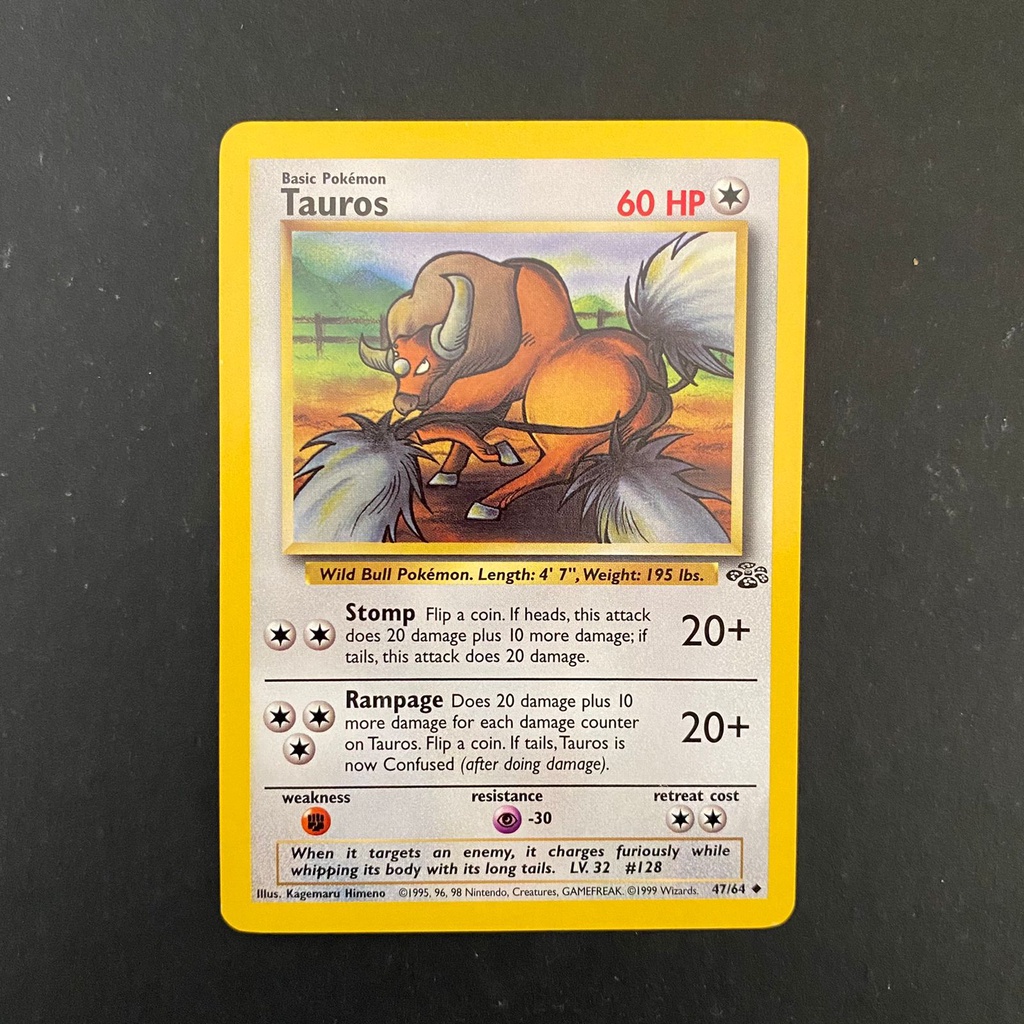 Original 1999 Pokemon Card - Tauros - Uncommon 47-64