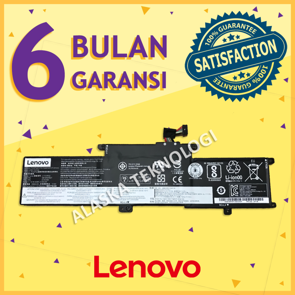 Original Baterai Batre Laptop Notebook Lenovo ThinkPad L380 L380 Yoga L390 L390 Yoga Yoga S2 - L17L3P53 L17M3P55 L17C3P53 01AV481 01AV482 01AV483 SB10K97625 SB10K97626 SB10K97627 TP00091A