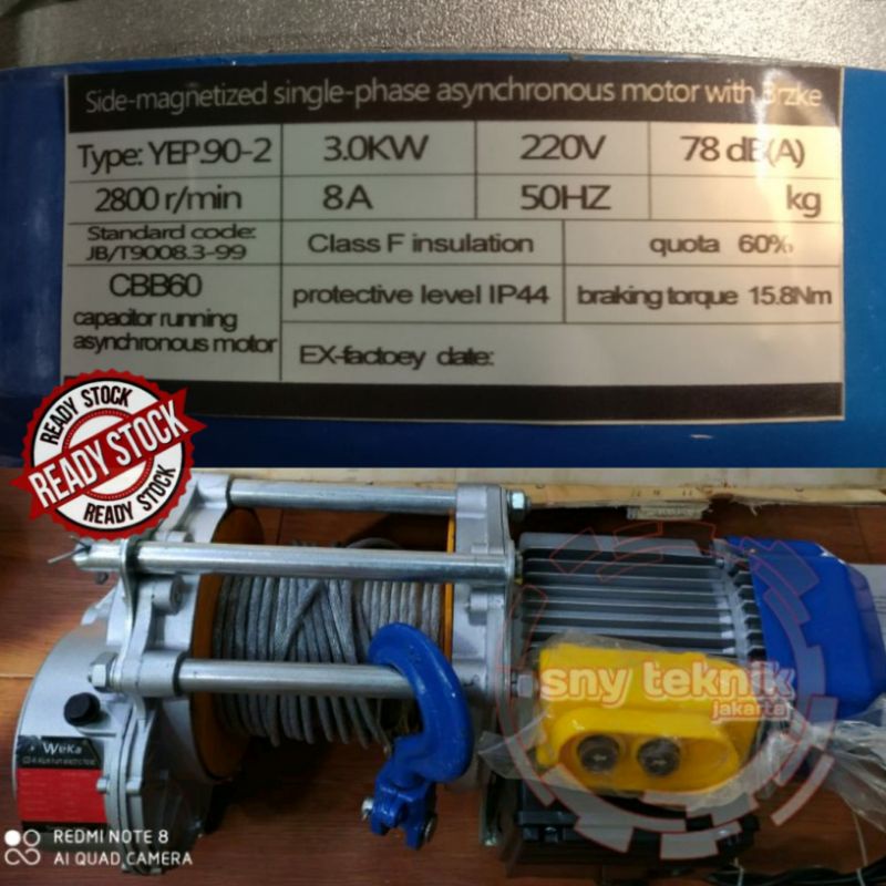 Original Electric Wire Hoist Katrol Seling Otomatis 1200kg x 20 meter (220 volt)