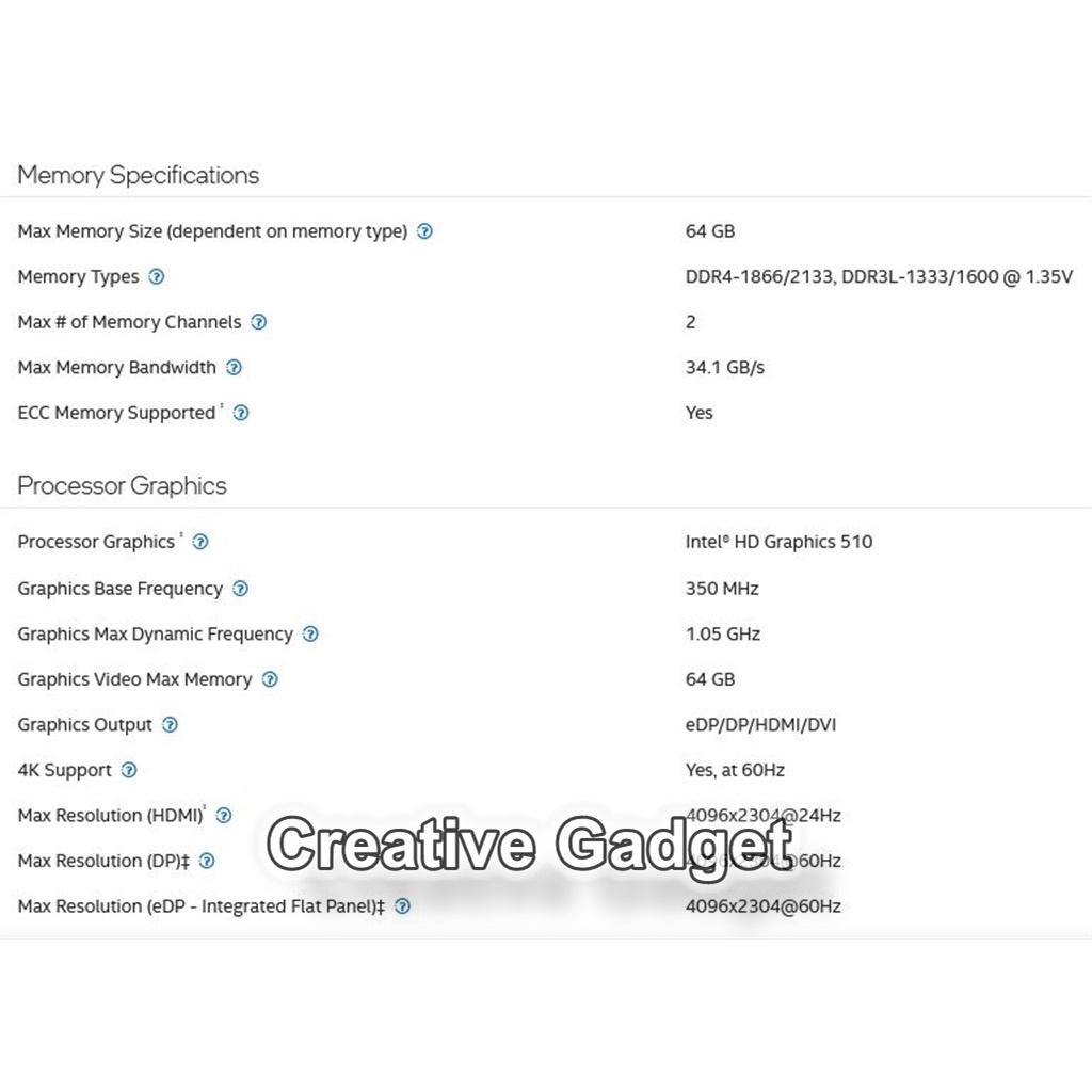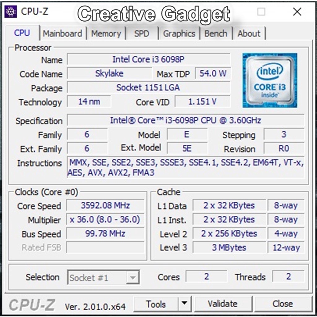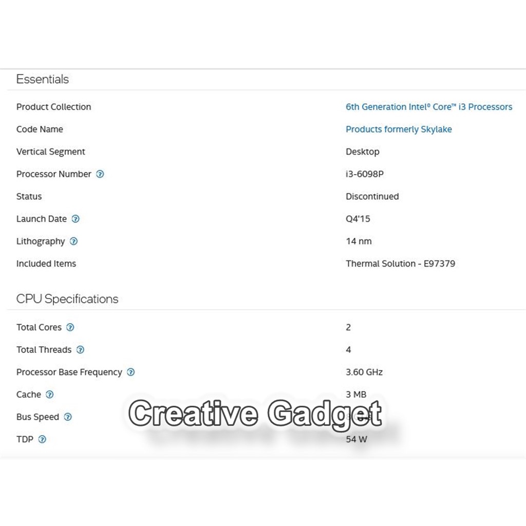 Original Intel Processor Core i3-6098p 3,60 GHz - Socket LGA 1151 - Skylake Gen 6 - 3M Cache - Support VGA Onboard with Processor Graphics - Intel HD Graphics 510 untuk Fast Upgrade Lebih Cepat - bukan i3-6100 Hemat daya