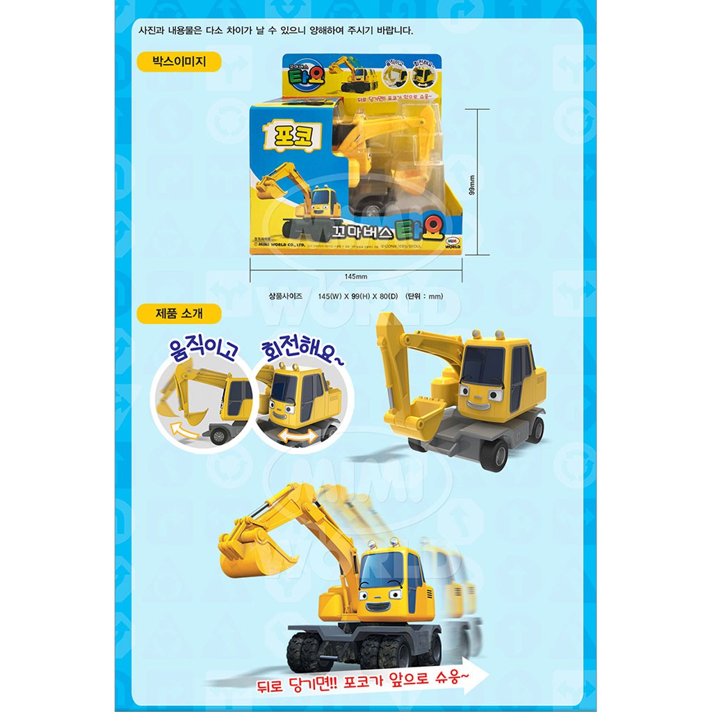Original Tayo The Little Bus Poco Excavator TYX218004 Mimi World Korean Toys Animation Pull Backward