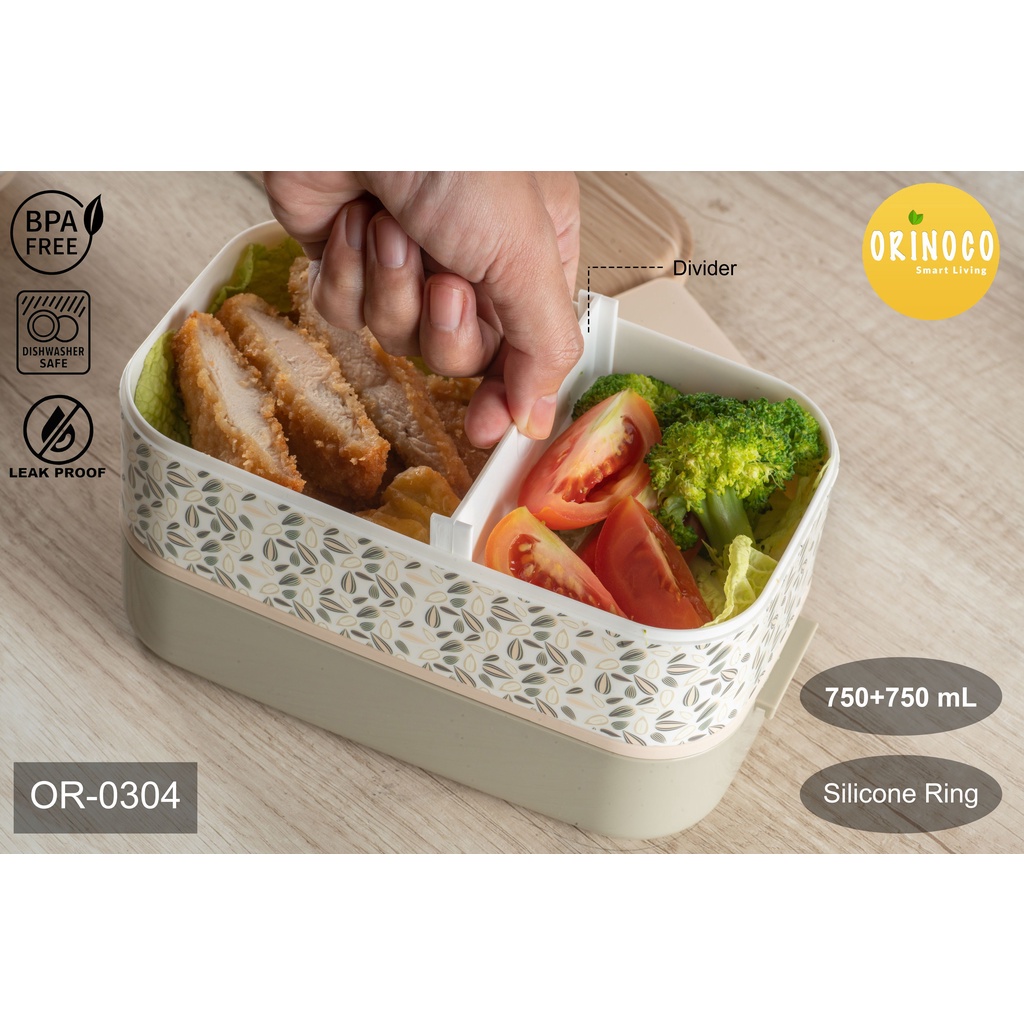 Orinoco Kotak Makan Plastik 2 Layer Stackable Motif Printing Lunchbox OR-0304 Anti Tumpah 1500 ML