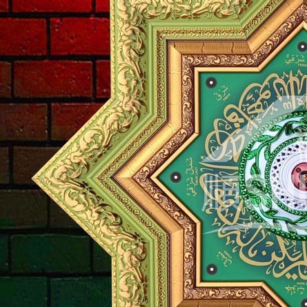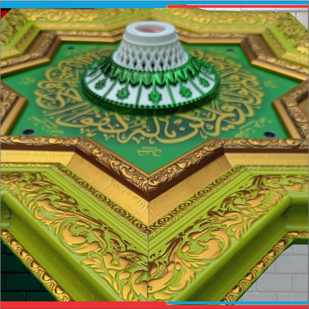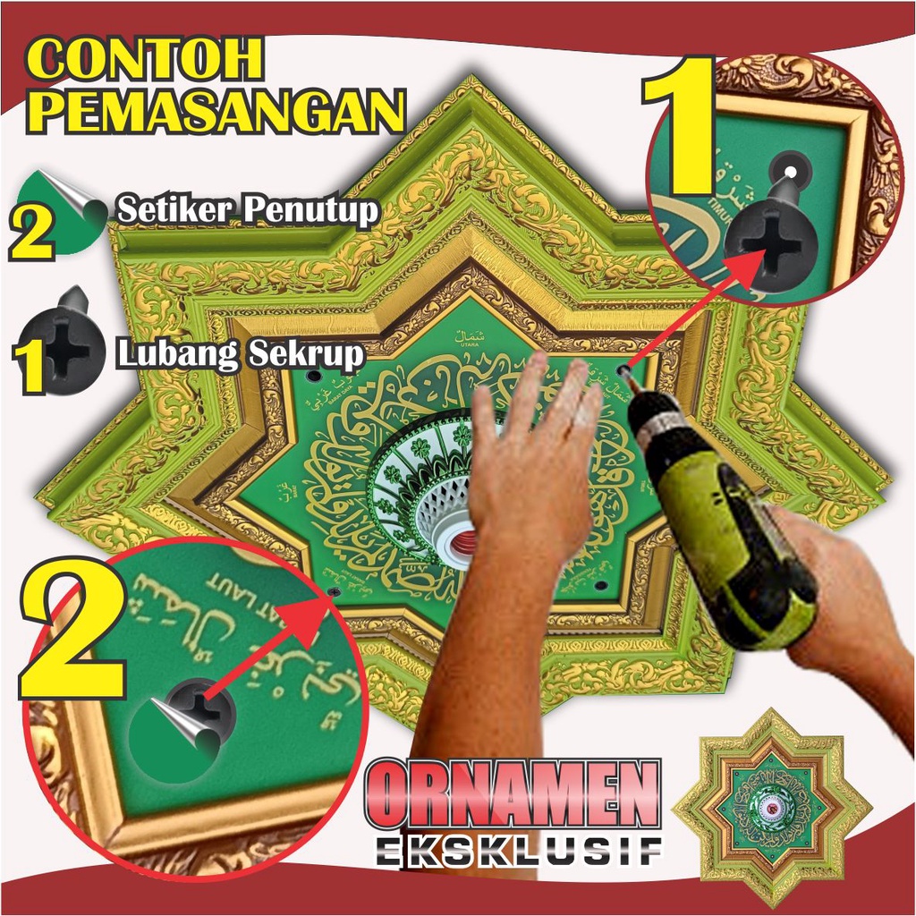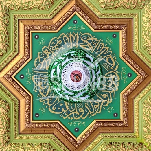 Ornamen Lampu PVC / Ornamen Plafon PVC / Fitting Lampu / Piting Lampu/ Tempat Lampu/ Asesories Plafon / Rumah Lampu Hias / Lampu Hias Plafon / Bola Lampu Hias Kaligrafi Al Iklas Bentuk Bintang Hijau Emas BK-814