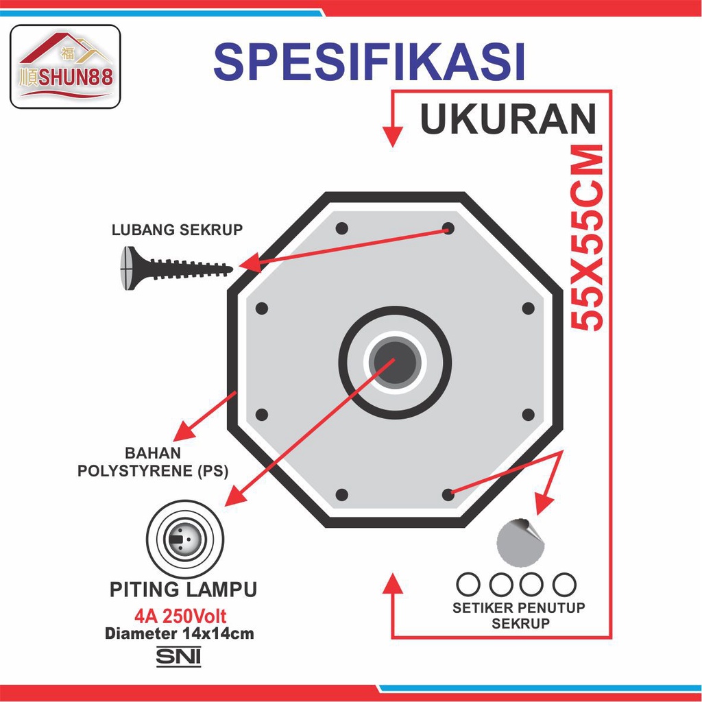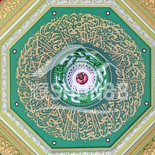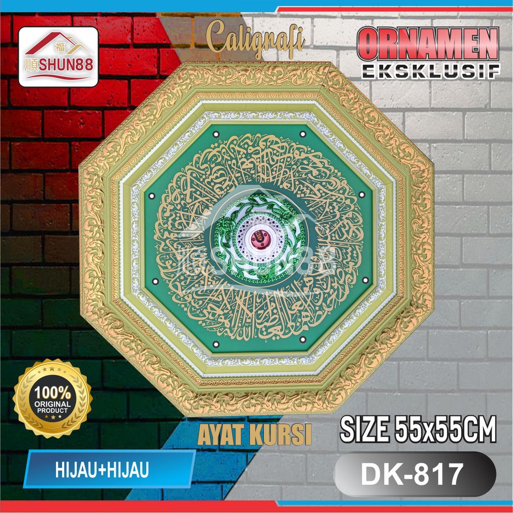 Ornamen Lampu PVC / Ornamen Plafon PVC / Fitting Lampu /Piting Lampu/Tempat Lampu/Dudukan Lampu/ Rumah Lampu Hias / Lampu Hias Plafon / Bola Lampu Hias Motiv Kaligrafi Ayat Kursi Bentuk SEGI8 Hijau+Hijau DK-817