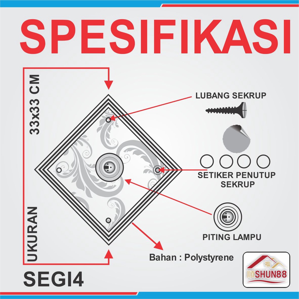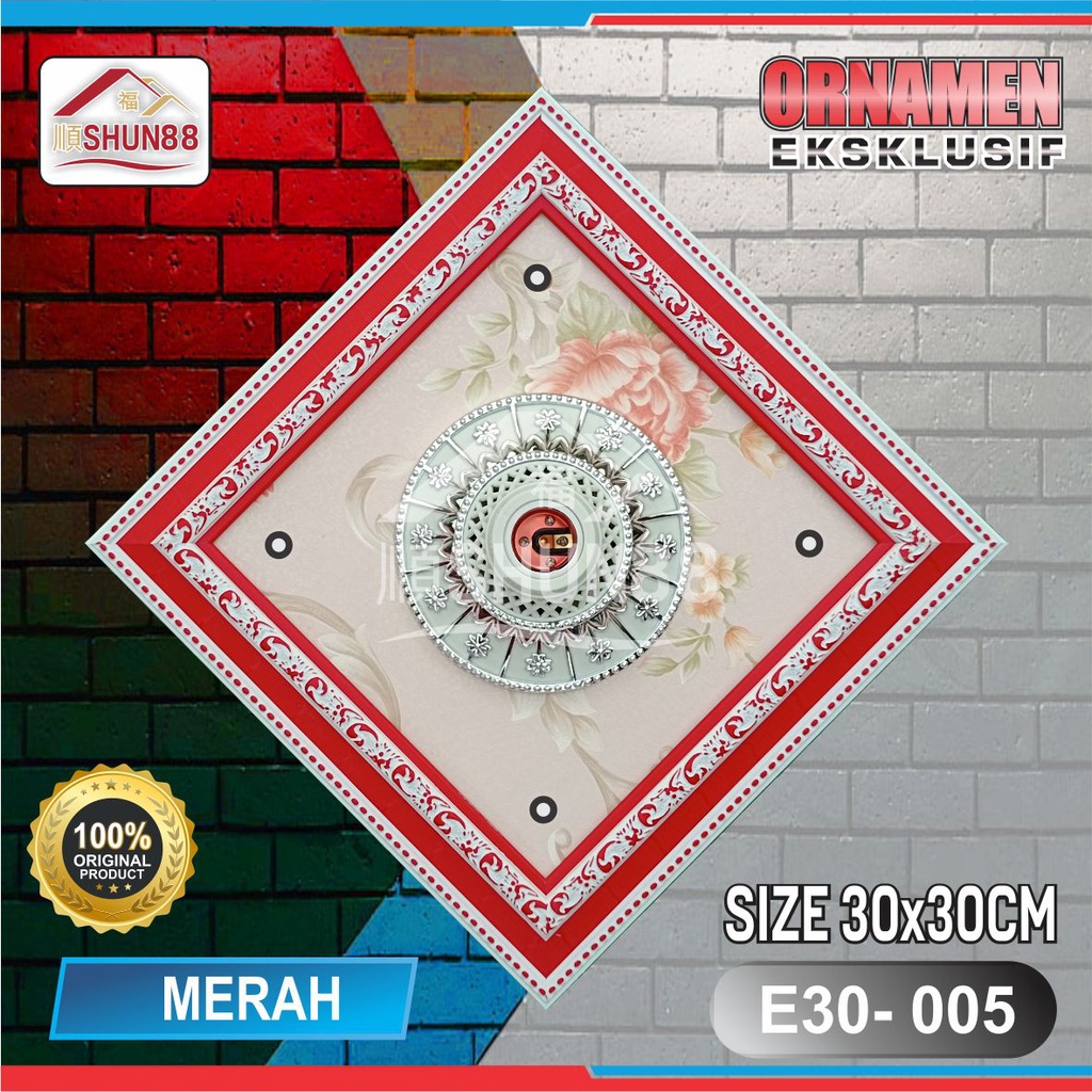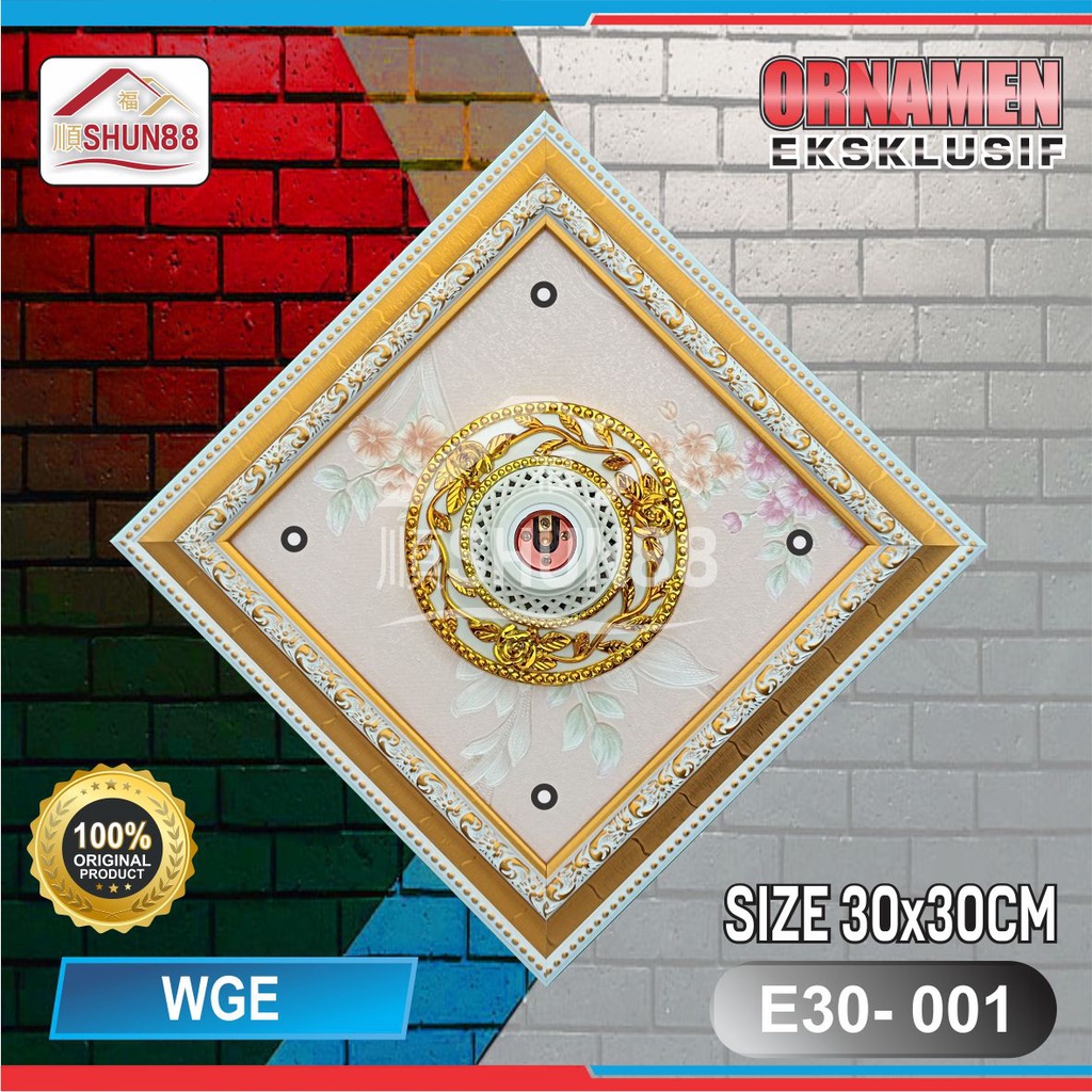 Ornamen Lampu PVC / Ornamen Plafon PVC / Fitting Lampu / Rumah Lampu Hias / Lampu Hias Plafon / Bola Lampu Hias Segi4 Varian 30x30 E30-01-E30-06