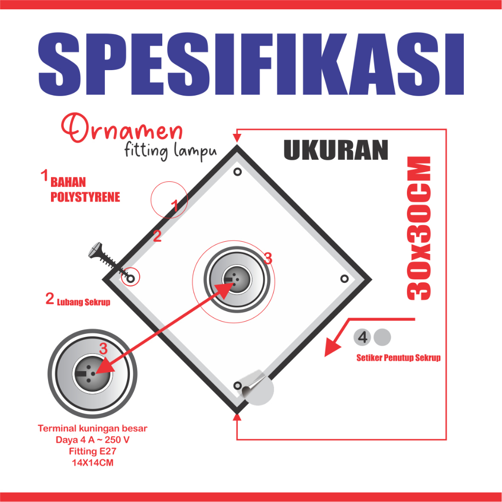 Ornamen Lampu PVC / Ornamen Plafon PVC / Fitting Lampu / Rumah Lampu Hias /Piting Lampu/Tempat Lampu Plapon/Lampu Hias Plafon / Bola Lampu Hias Bentuk SEGI4 30x30 CM Black-Nw E30-32 Black