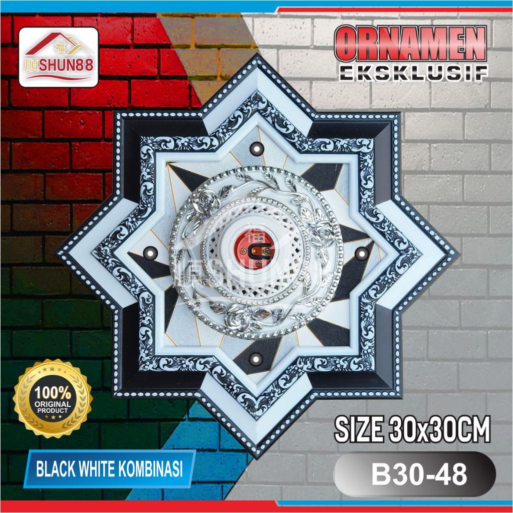 Ornamen Lampu PVC / Ornamen Plafon PVC / Fitting Lampu / Rumah Lampu Hias /Piting Lampu/Tempat Lampu Plapon/Lampu Hias Plafon / Bola Lampu Hias Model Bintang 30x30 Black White