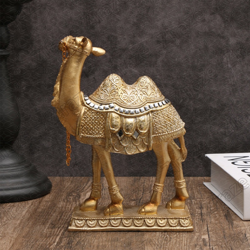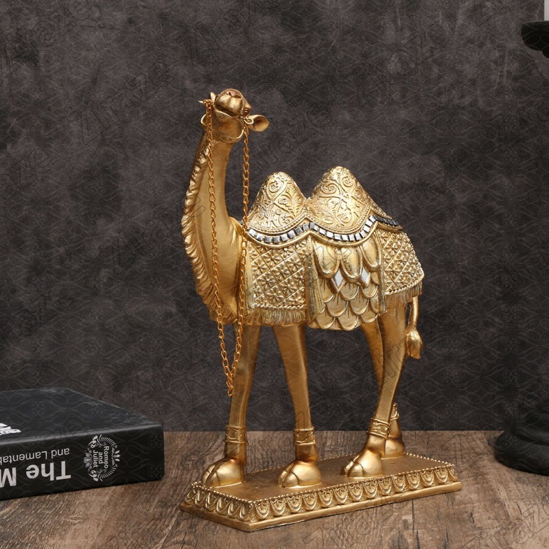 Ornamen Unta Gurun Untuk Dekorasi Teras Ruang Tamu Rumah / Hiasan Unta Emas / Miniatur Unta Dekorasi Idul Fitri / Camel Polyresin Gold Decoration