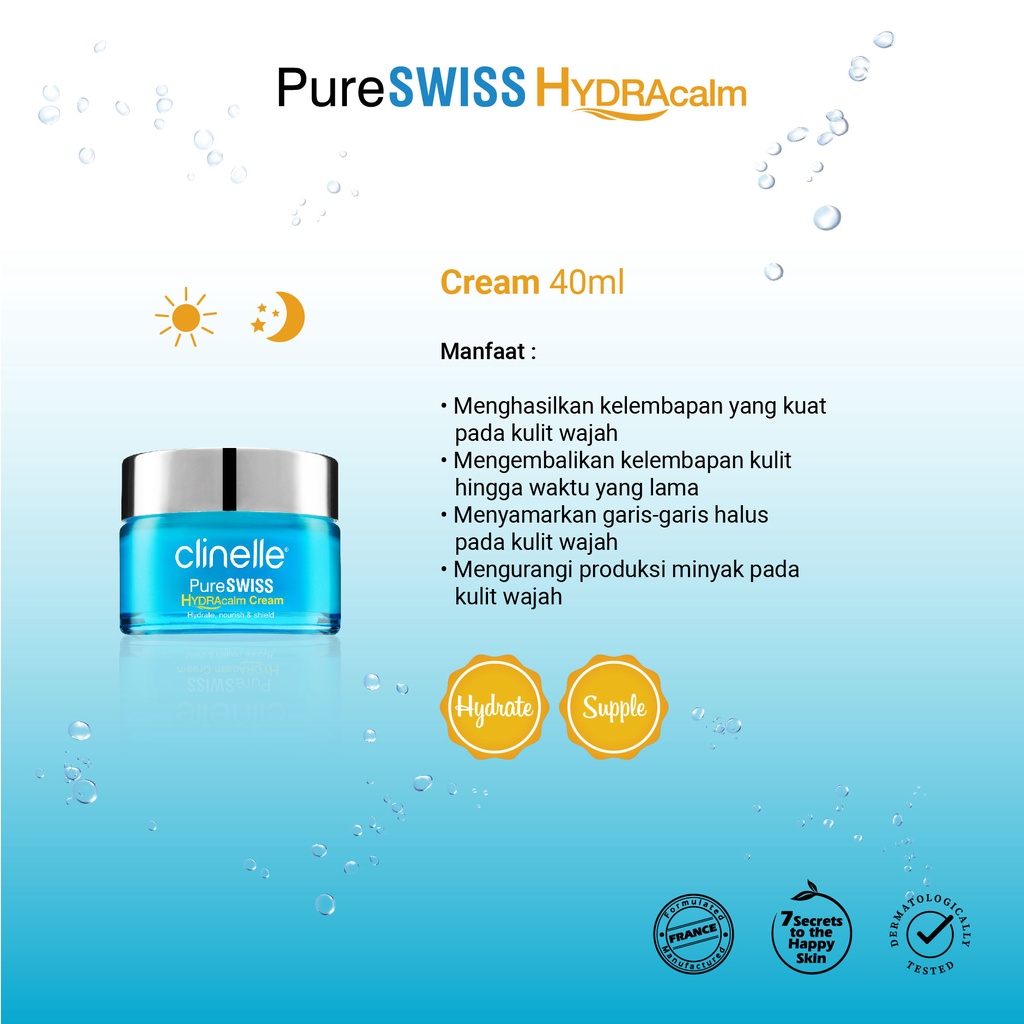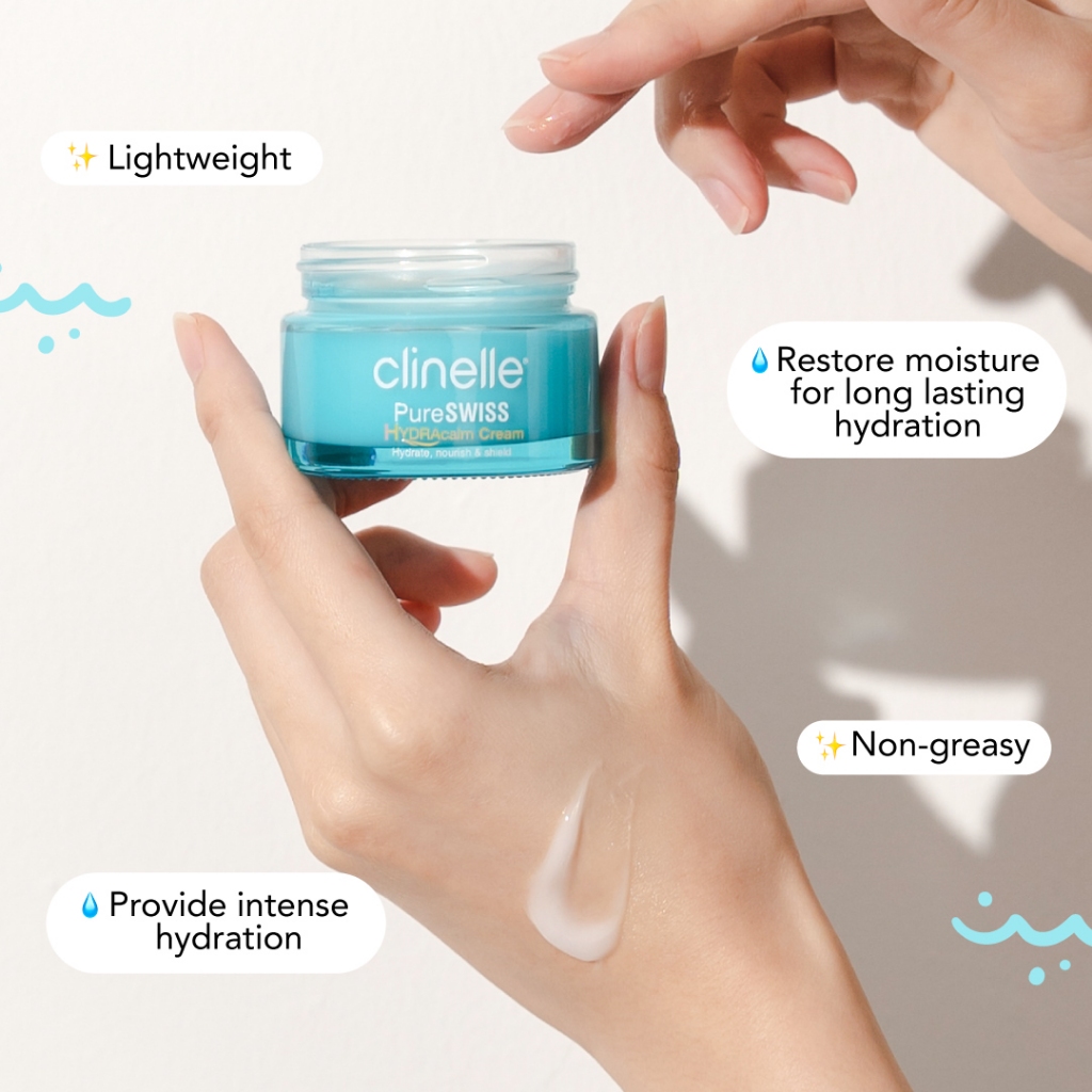 [Best Seller] CLINELLE PureSwiss Hydracalm Cream 40 mL - Pelembap Wajah Kulit Kering/ Sensitif Moisturizer Menjaga Kelembaban Kulit [ Natural Hyaluronic Acid | Pureswiss Thermal Spring Water | Bio Calm Complex ]