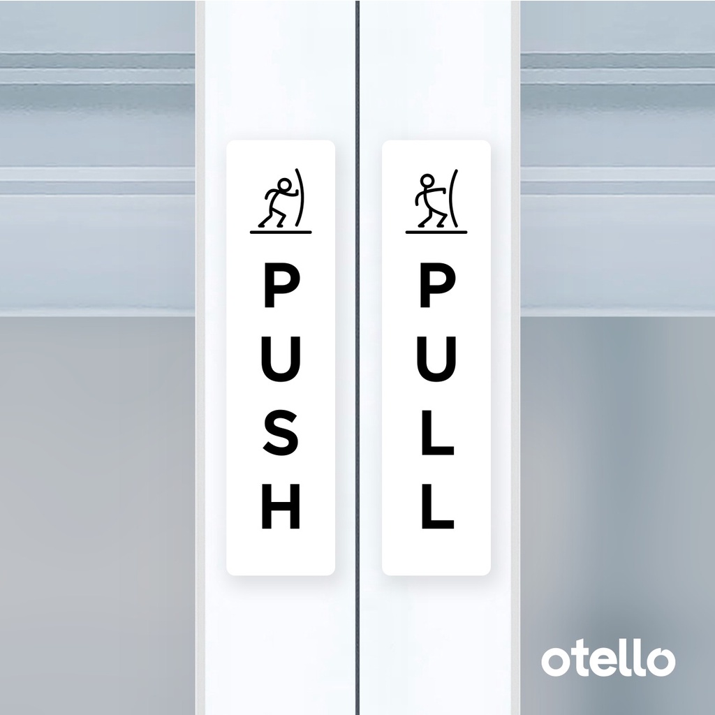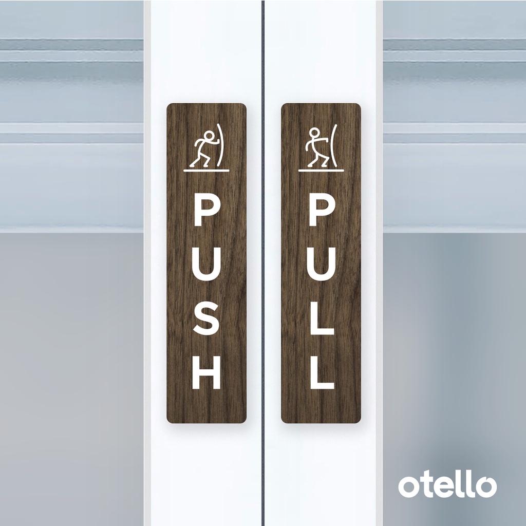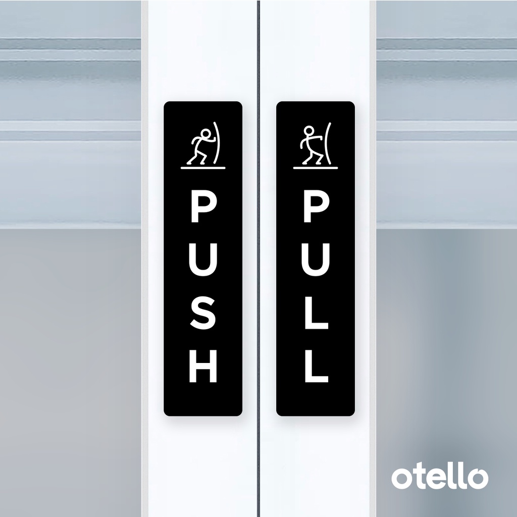 Otello Label Sticker Push Pull Icon Unik Sign Acrylic Modern Minimalist Signage Board Akrilik Kayu Pintu Tempel Stiker Pintu Kafe Restoran Kantor Gedung