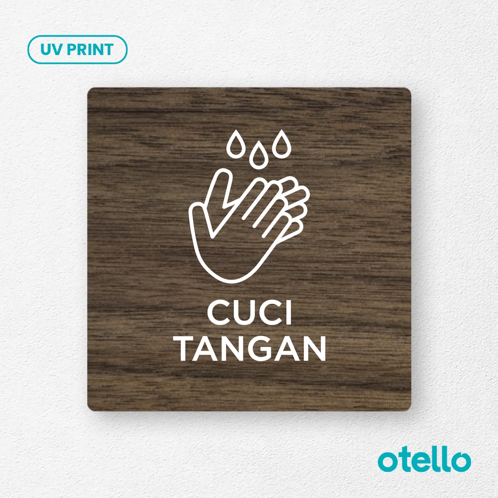 Otello Signage Cuci Tangan Sign Board Kayu Print Tulisan Papan Label Tempel Sticker Petunjuk Arahan Dinding