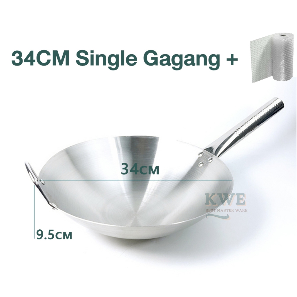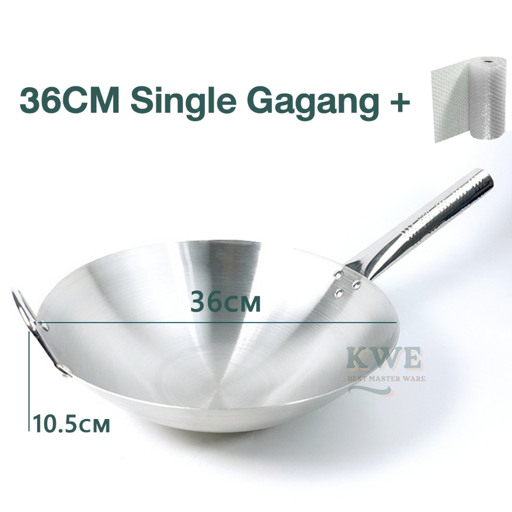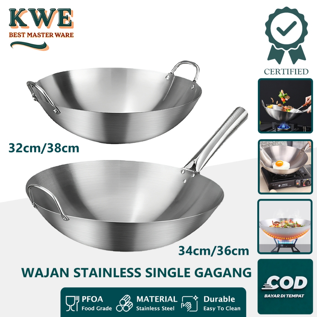 KWE PREMIUM Kuali Anti Lengket Stainless 34CM 36CM Tebal Food Grade Panjang Wajan Stainless Steel Wok anti gores