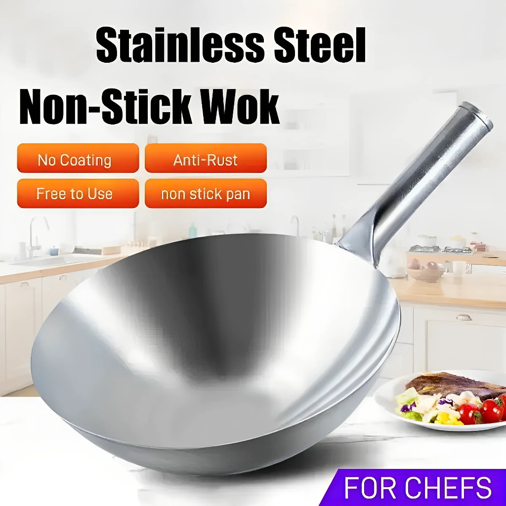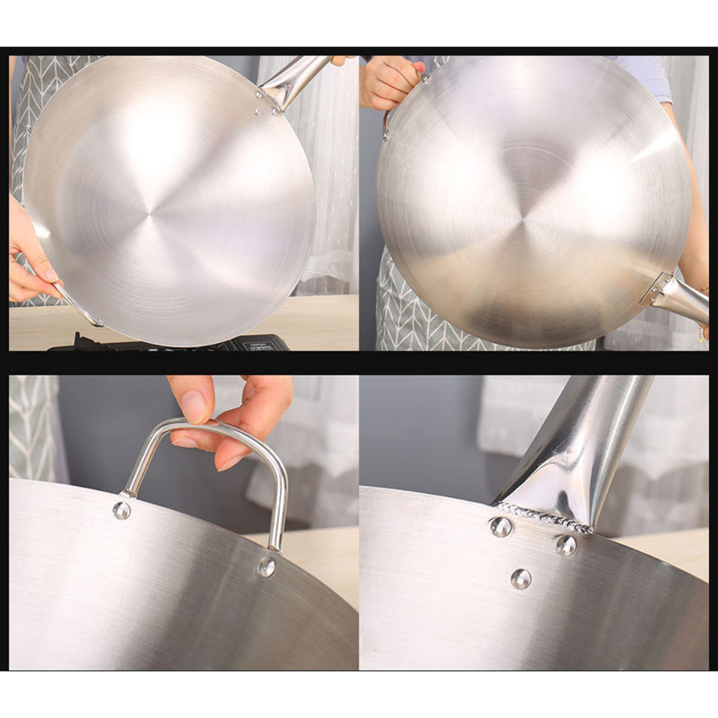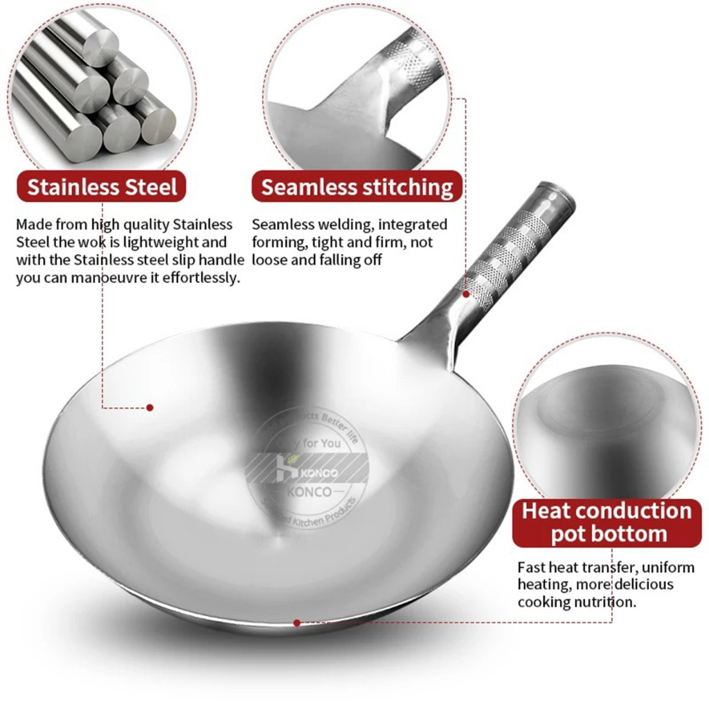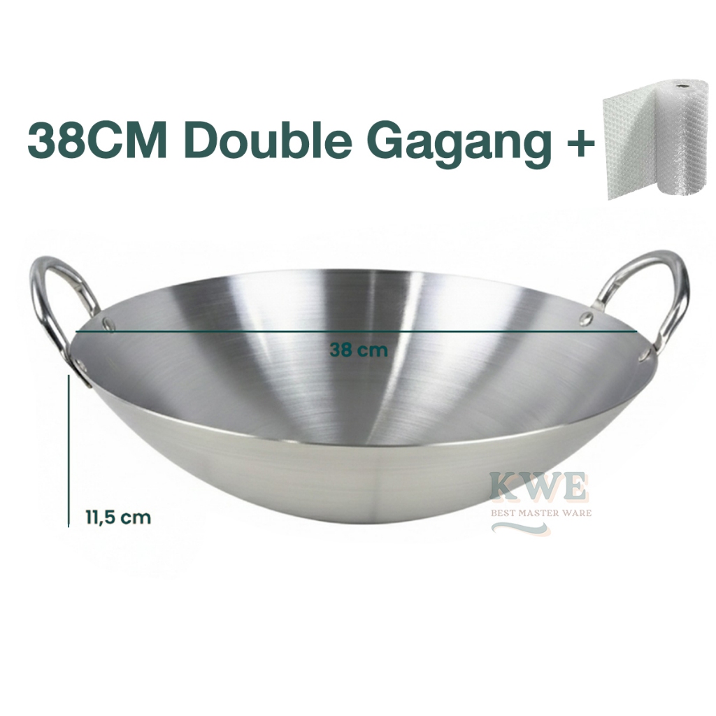 KWE PREMIUM Kuali Anti Lengket Stainless 34CM 36CM Tebal Food Grade Panjang Wajan Stainless Steel Wok anti gores