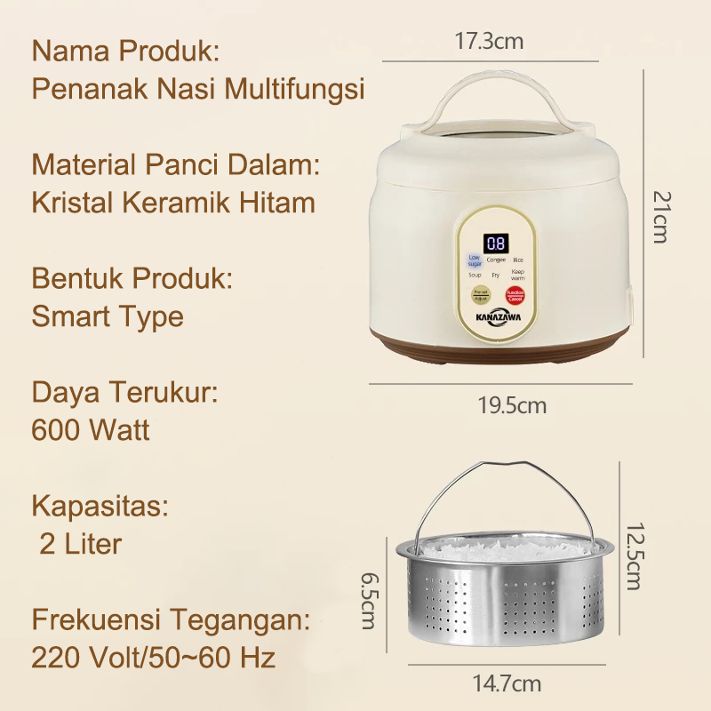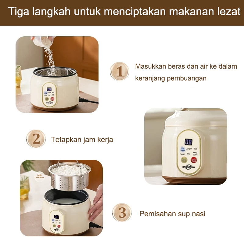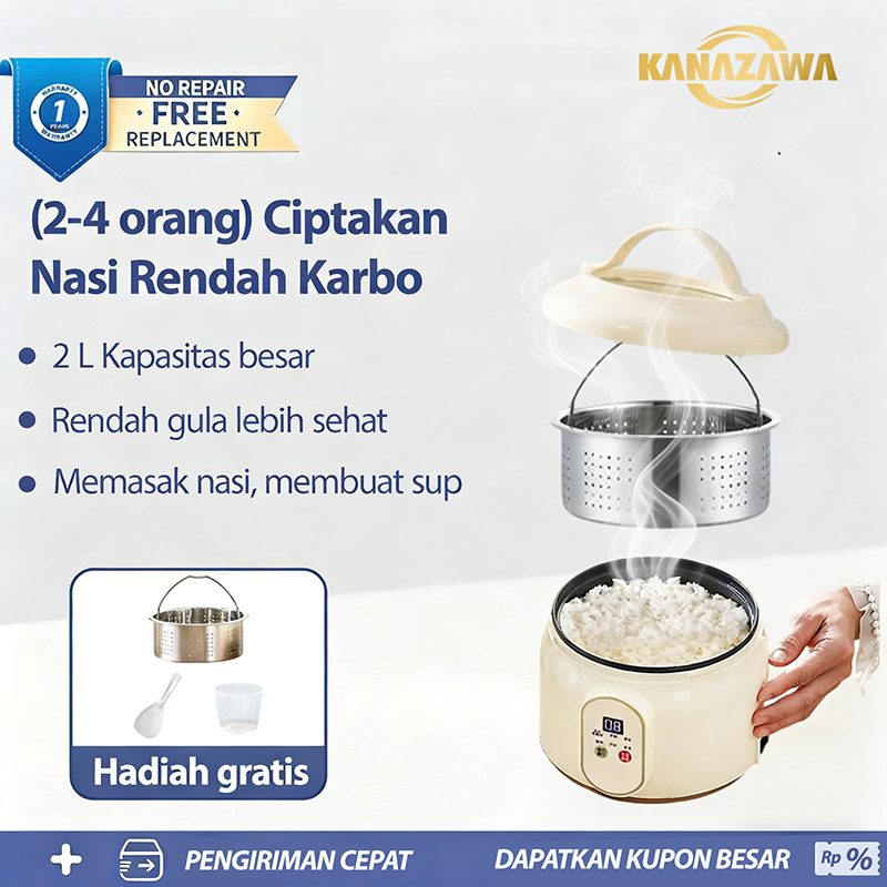 KANAZAWA Rice Cooker Digital Low Carbo Less Sugar 2 Liter Nasi Stainless Steel inner Pot