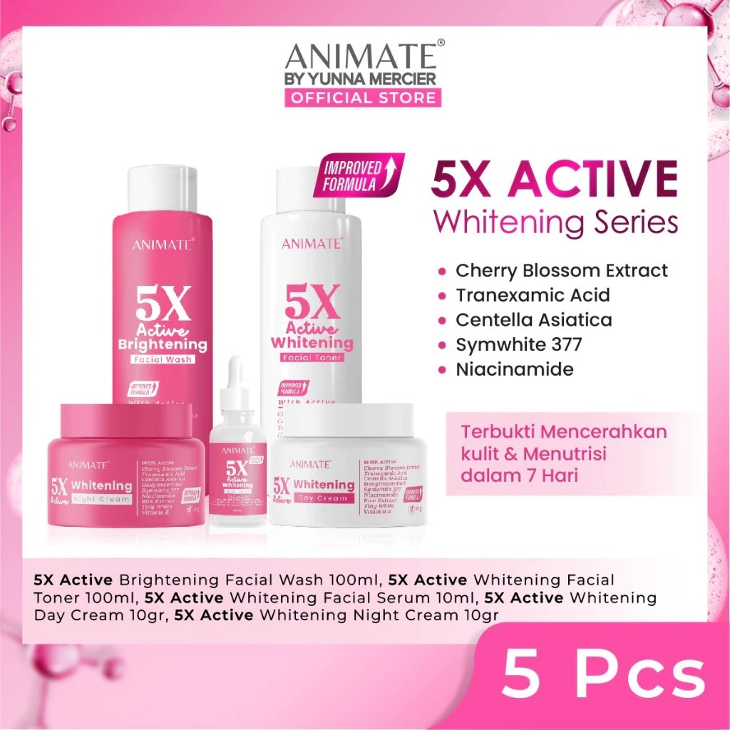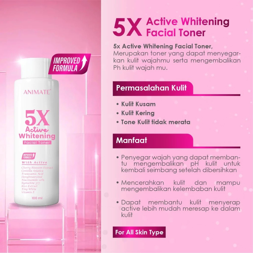 [Ecer] Animate Skincare Pink / Day Cream - Night Cream - Toner - Facial Wash / Pencerah Wajah