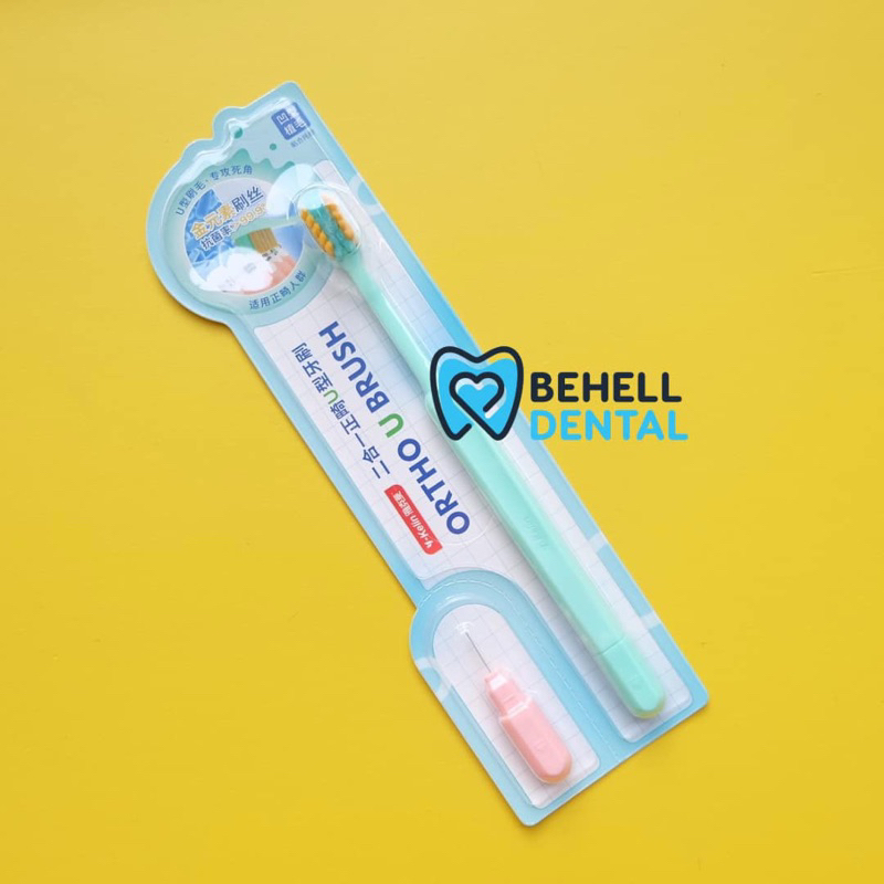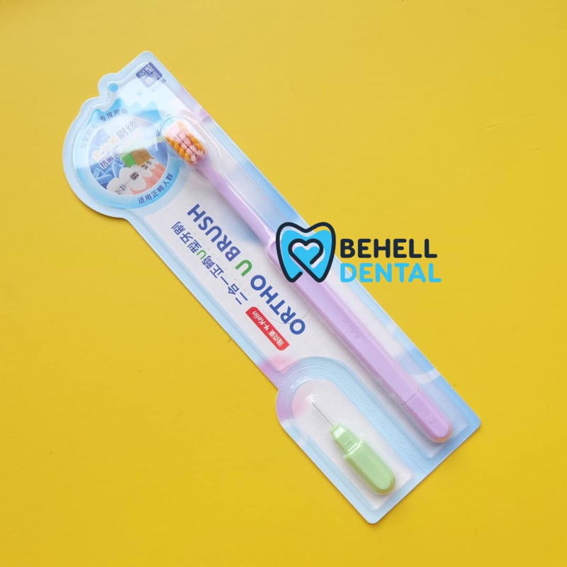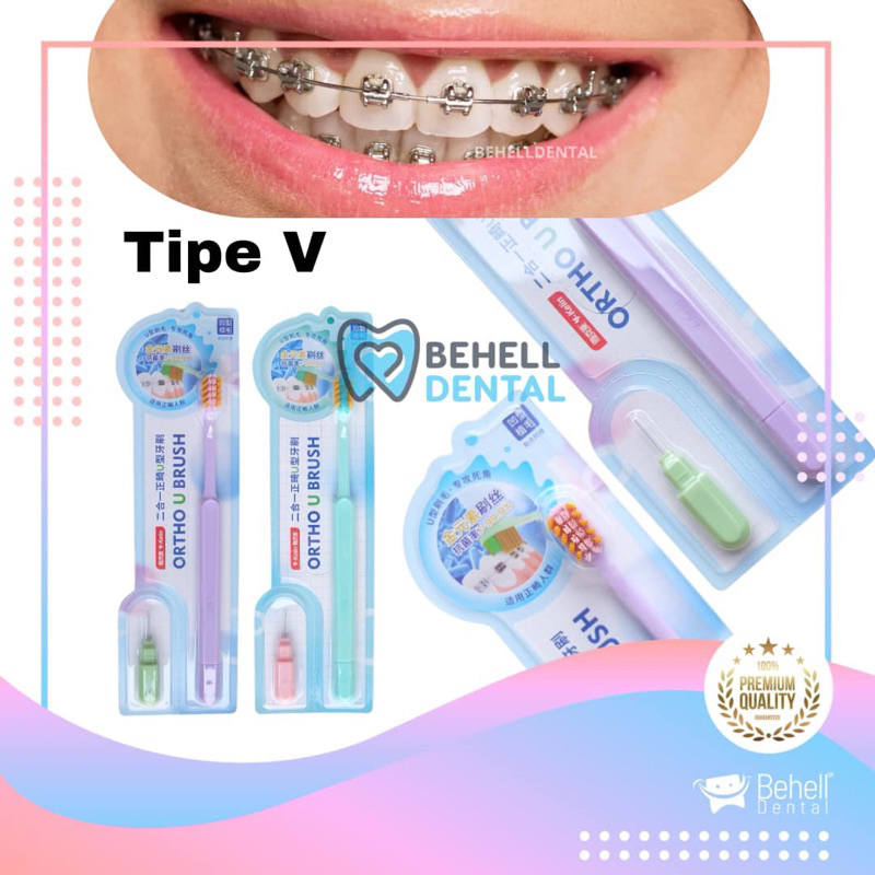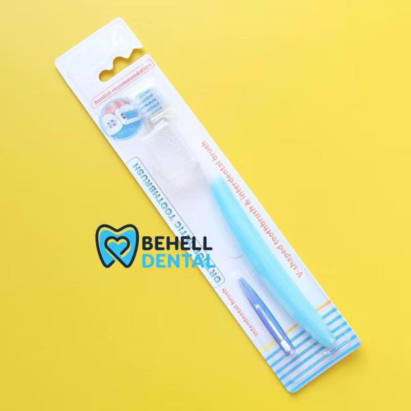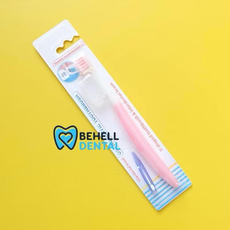 Sikat Gigi Behel V Shaped Dengan Tutup BONUS INTERDENTAL BENGKOK BRUSH Orthodontic - Tooth Brush Dr Smith Dr Smile Tengah Cekung V Trim Shape - 2In1 2 In 1 Toothbrush Ortho Free Sikat Sela Celah Tusuk Floss Flossing - Pembersih Penghilang Plak Gigi [C1]
