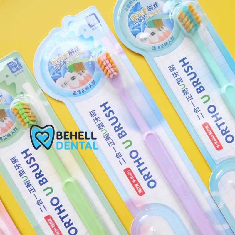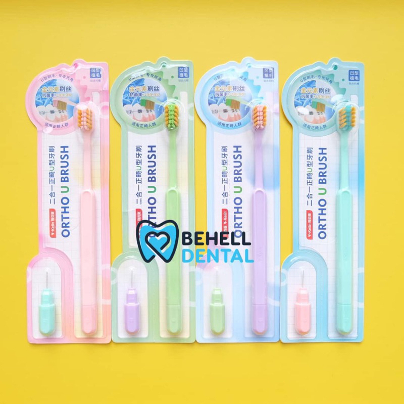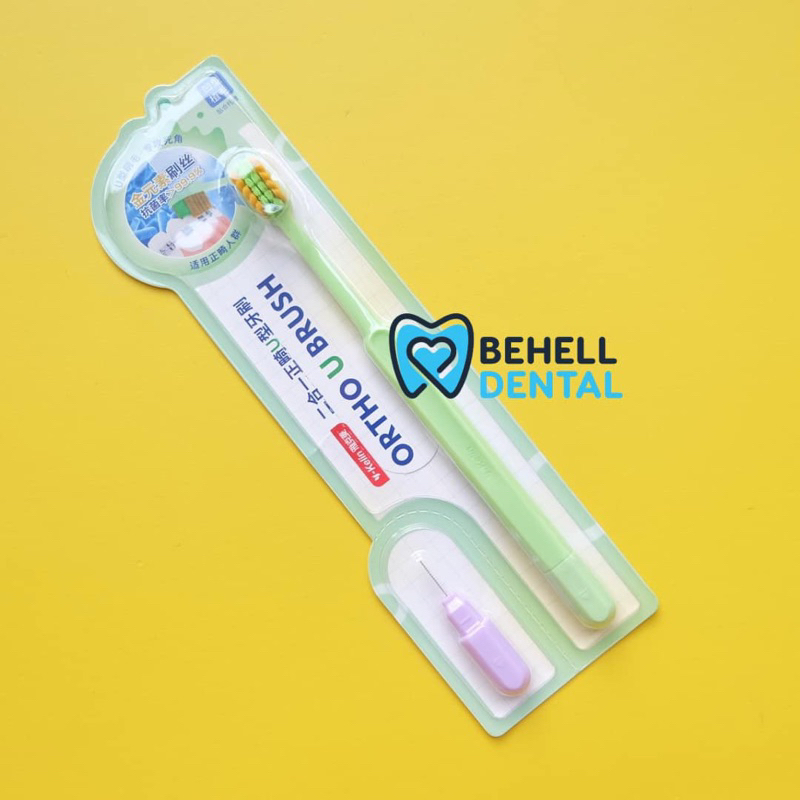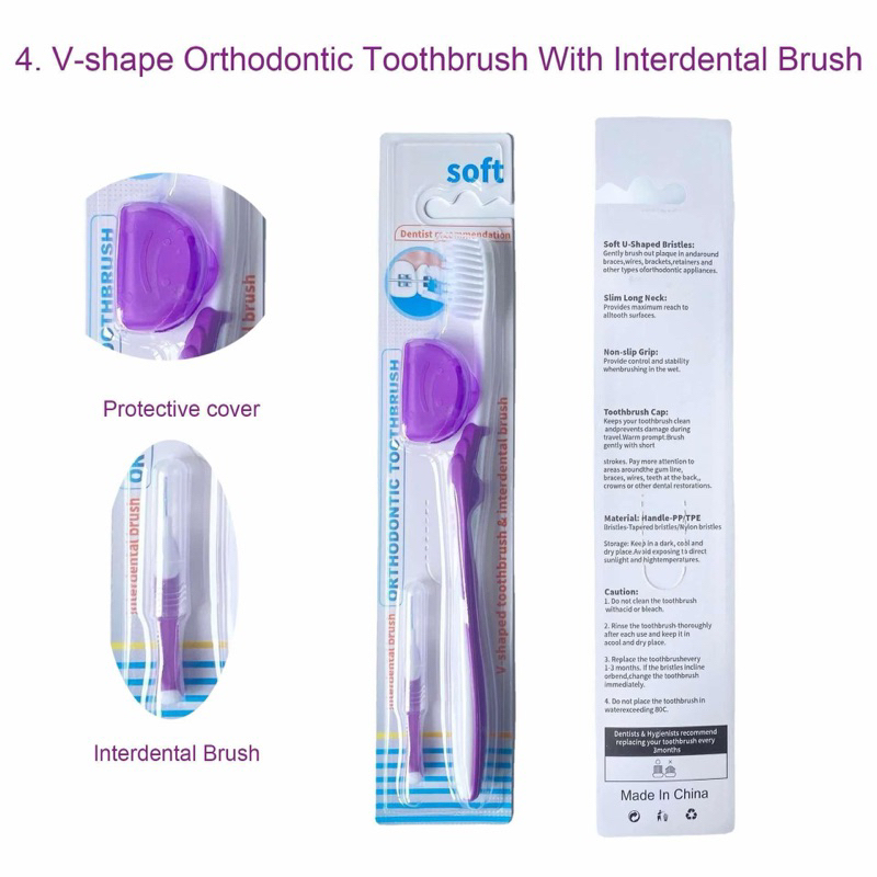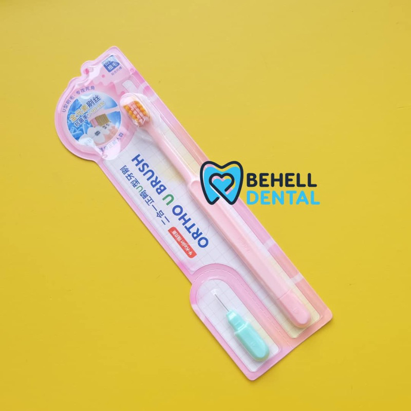 Sikat Gigi Behel V Shaped Dengan Tutup BONUS INTERDENTAL BENGKOK BRUSH Orthodontic - Tooth Brush Dr Smith Dr Smile Tengah Cekung V Trim Shape - 2In1 2 In 1 Toothbrush Ortho Free Sikat Sela Celah Tusuk Floss Flossing - Pembersih Penghilang Plak Gigi [C1]
