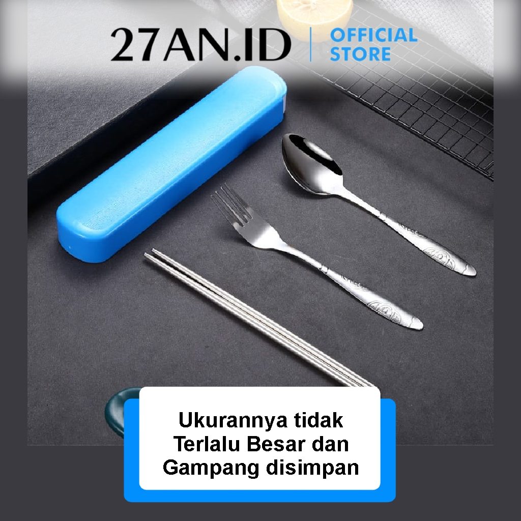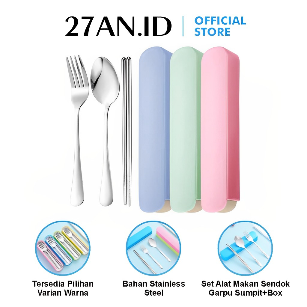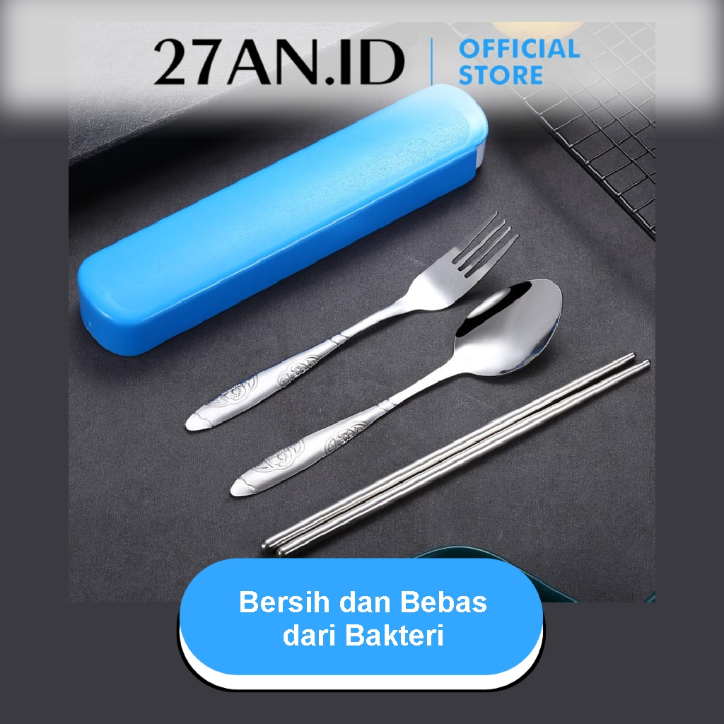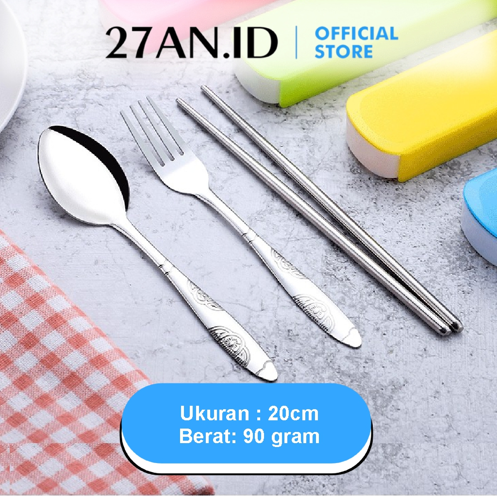 ( 27AN.ID) Set Alat Makan Sendok Garpu Sumpit+Box Bahan Stainless Steel