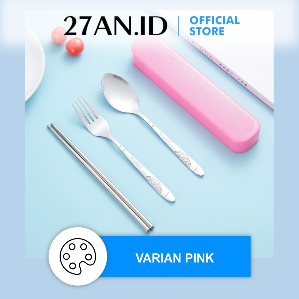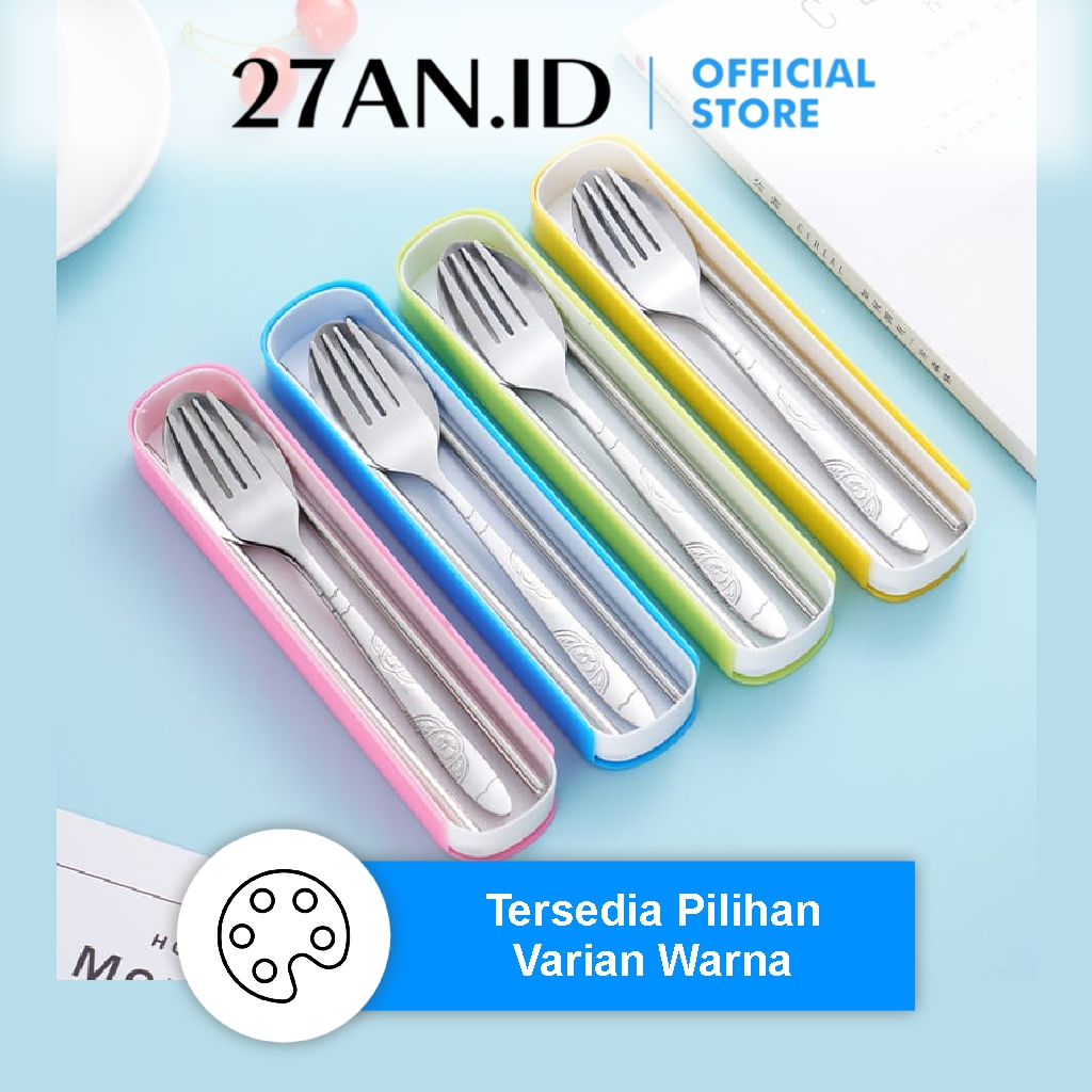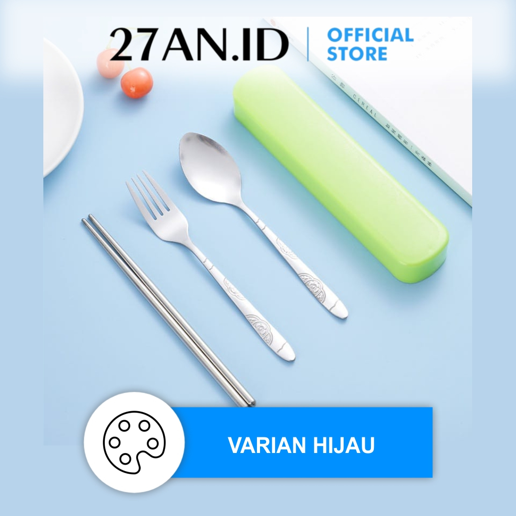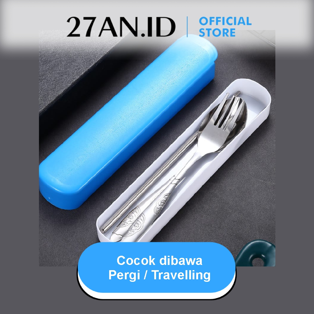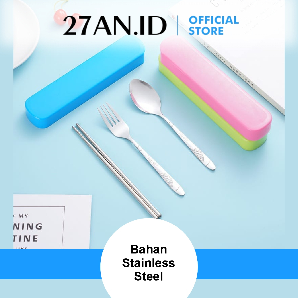 ( 27AN.ID) Set Alat Makan Sendok Garpu Sumpit+Box Bahan Stainless Steel