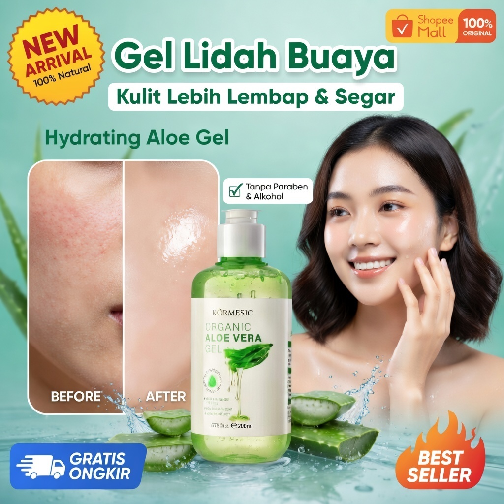 Aloe Vera Gel Lidah Buaya Alami Melembapkan, Menenangkan Kulit Wajah & Tubuh Ringan Cepat Meresap