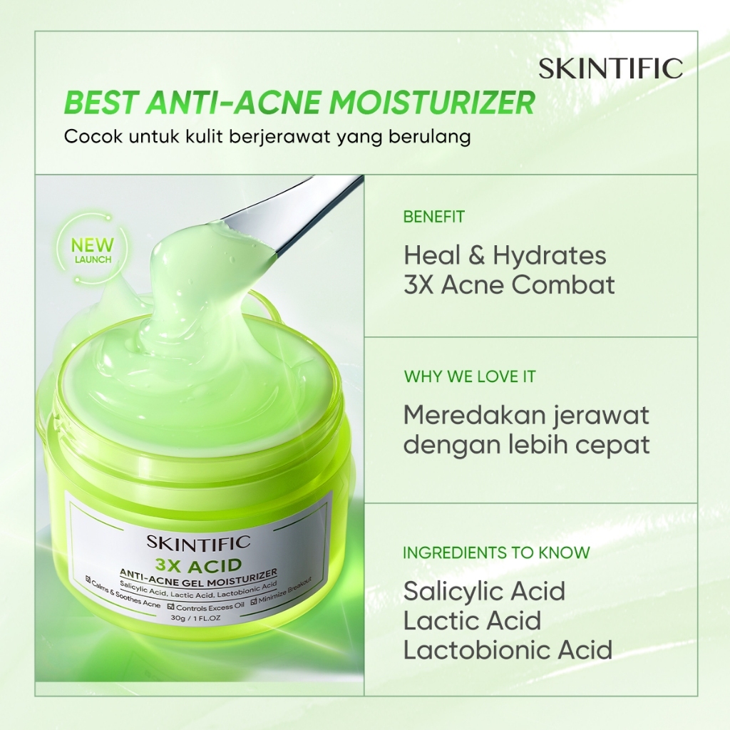 Pinkkwo - SKINTIFIC - 3X Acid Anti-Acne Gel Moisturizer 30g
