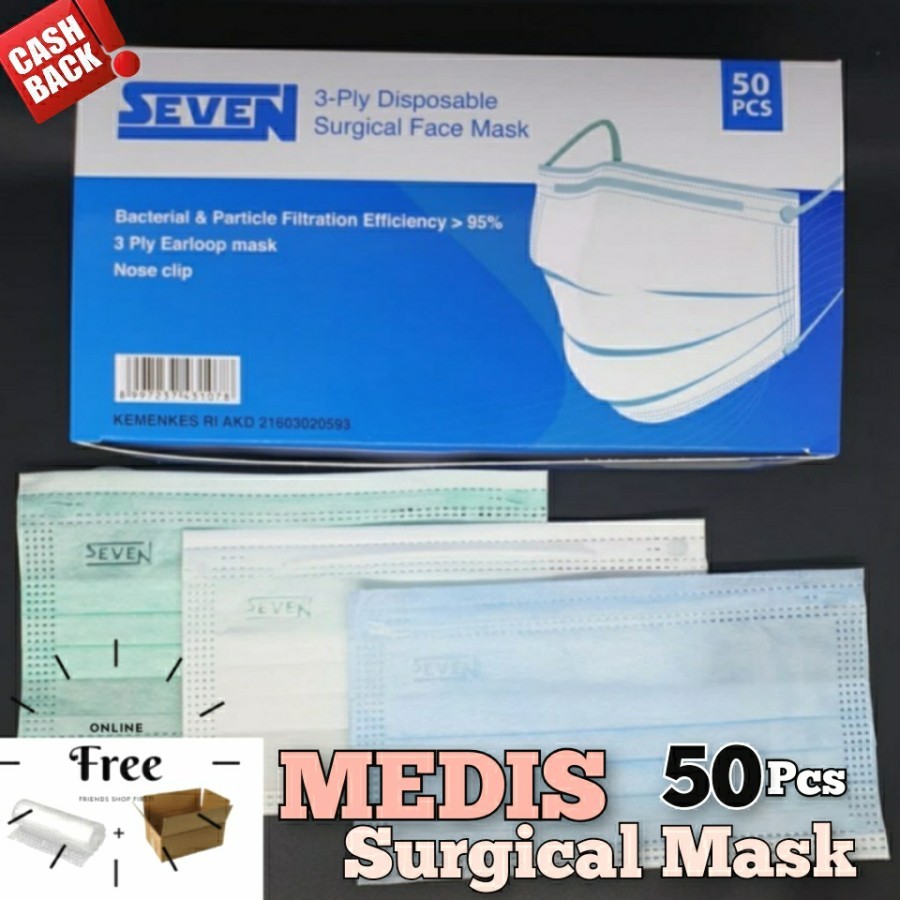 Masker Seven Medis 3ply isi 50pcs Kemenkes