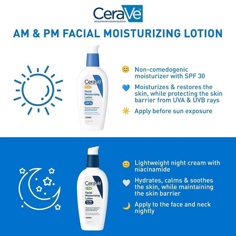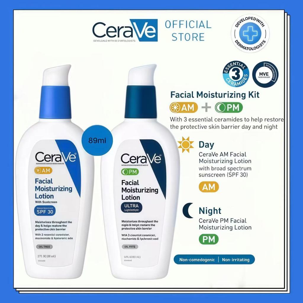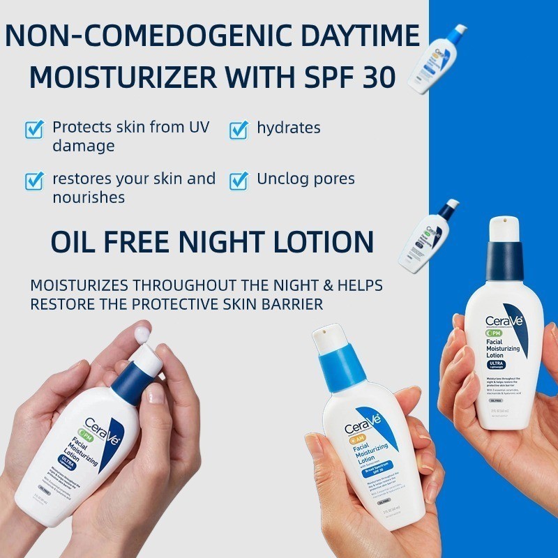 CeraVe Facial Moisturizing Lotion AM SPF 30 PM 89ML for Oily Skin Moisturizer Cream Sunscreen Whitening Moisturizing Repair Lotion 89ml For All Skin Types