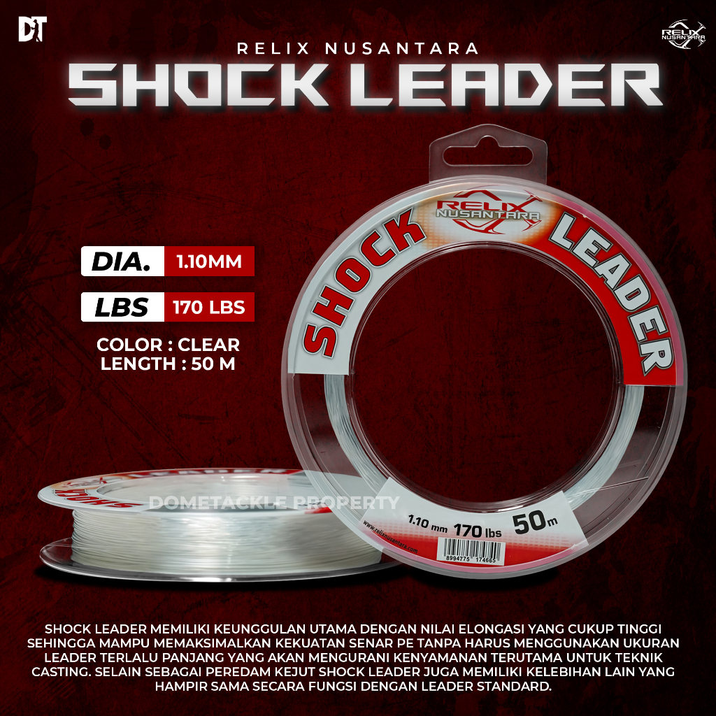 Leader Relix Nusantara Shock Leader 50 Meter Senar Pancing Size 15 18 20 25 30 40 50 60 70 80 100 lb | Shock Leader Firelock GT Record Absorber Premium Nylon 50 Meter | GT Leader Markiman | Senar Leader 100% Fluorocarbon Kuat & Tahan Gesekan