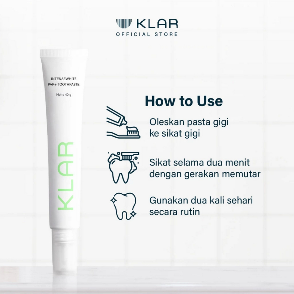KLAR INTENSE WHITENING PAP TOOTHPASTE 40 GR | Pasta Gigi Premium, Pemutih Gigi Natural