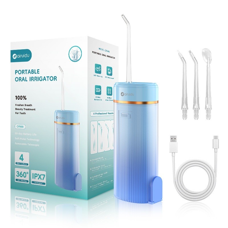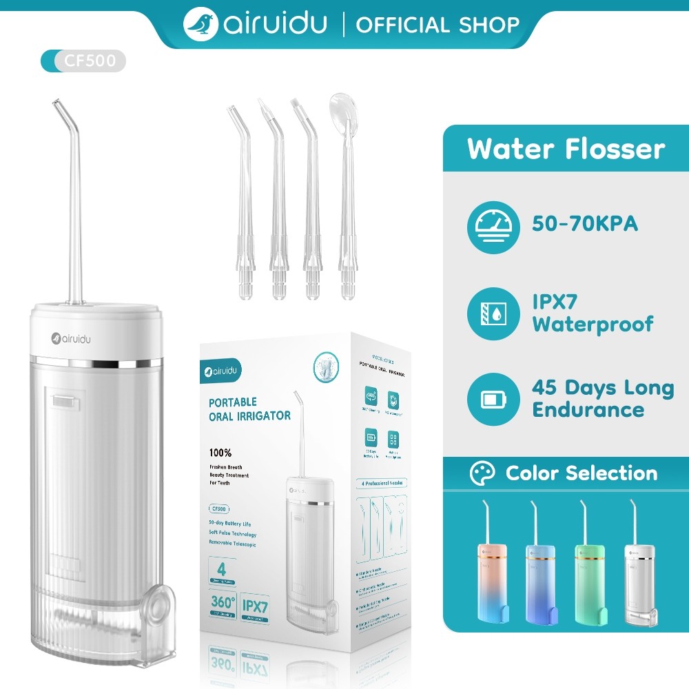 Airuidu CF500 Water Flosser 160ML Foldable Water Floss Gigi Oral Lrrigator Pembersih Gigi 3 Mode Pembilasan Tiga Kecepatan Pengisian USB Pembersih Karang Gigi
