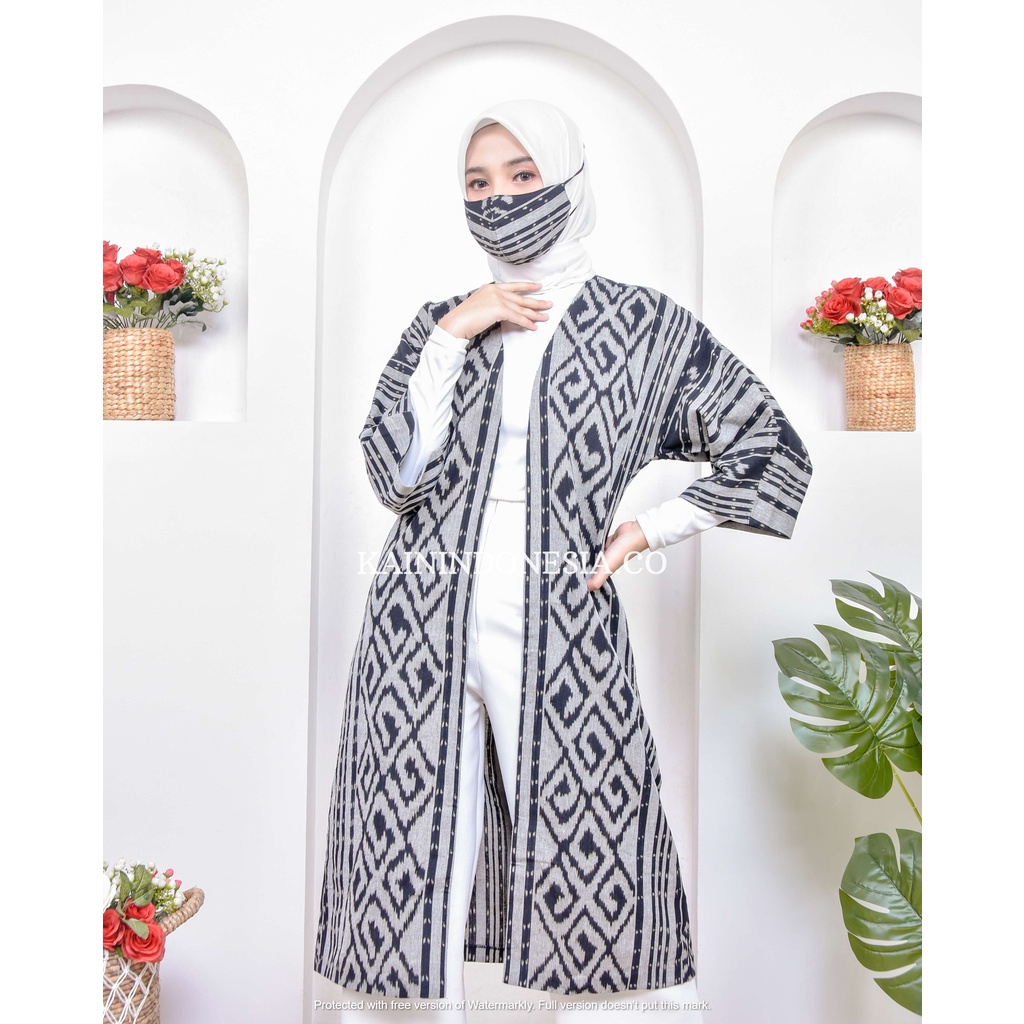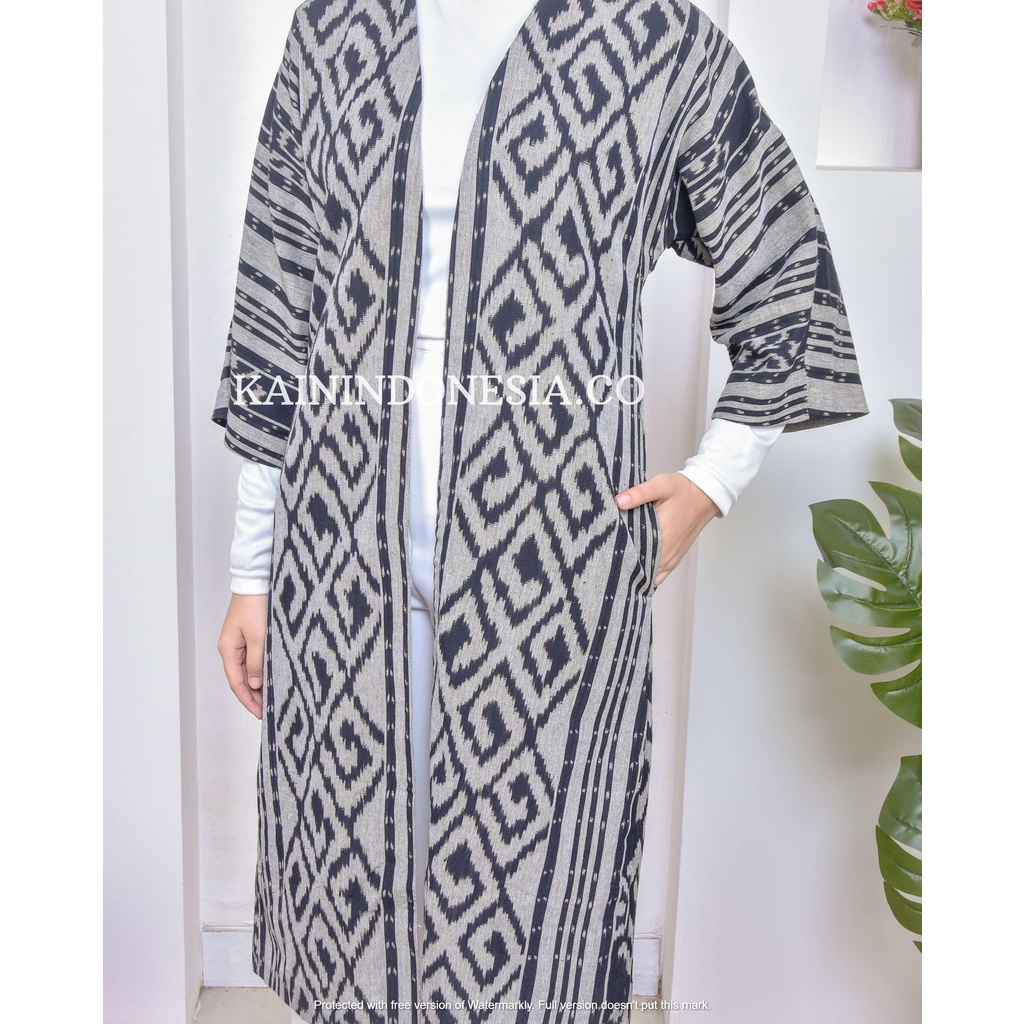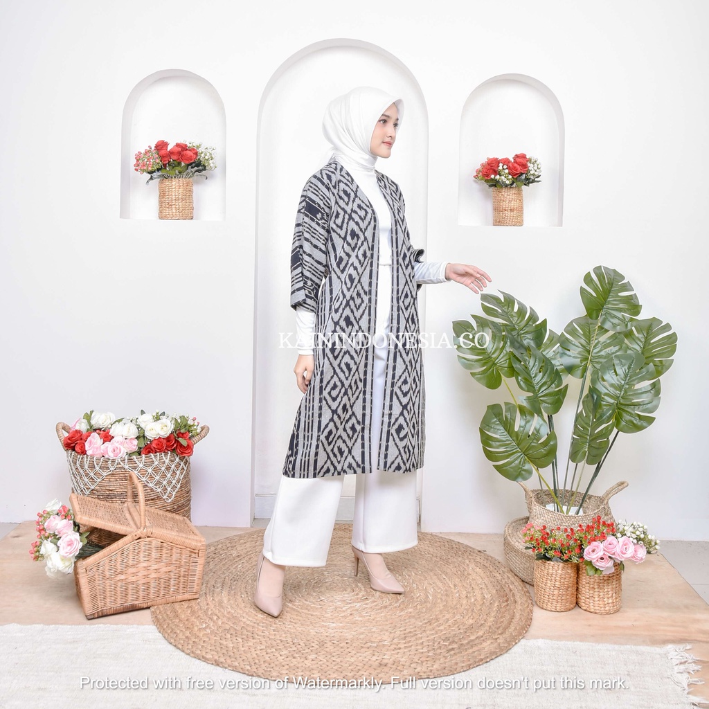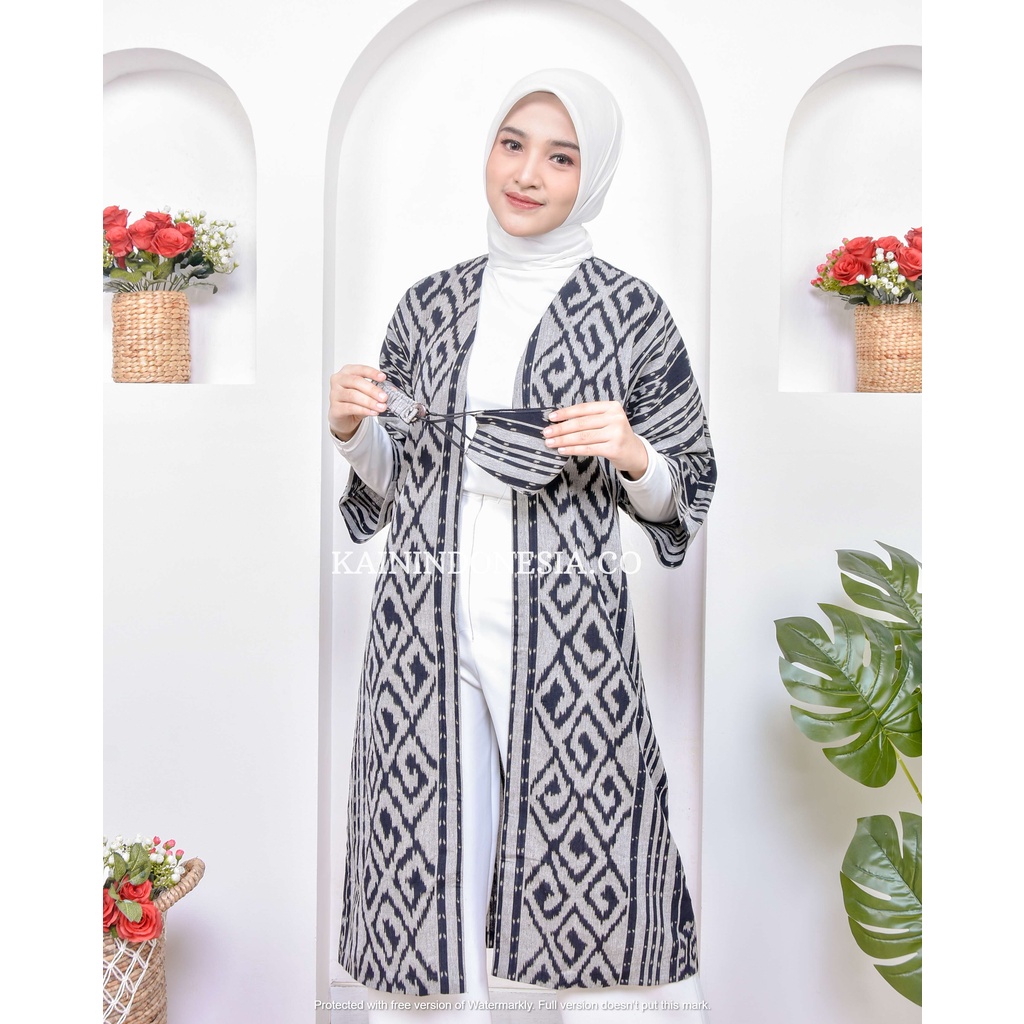 KI Outer Kimono Cardigan Kardigan Panjang Tenun Alesha Abu (Bonus Masker)