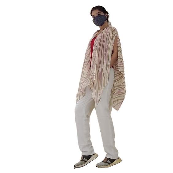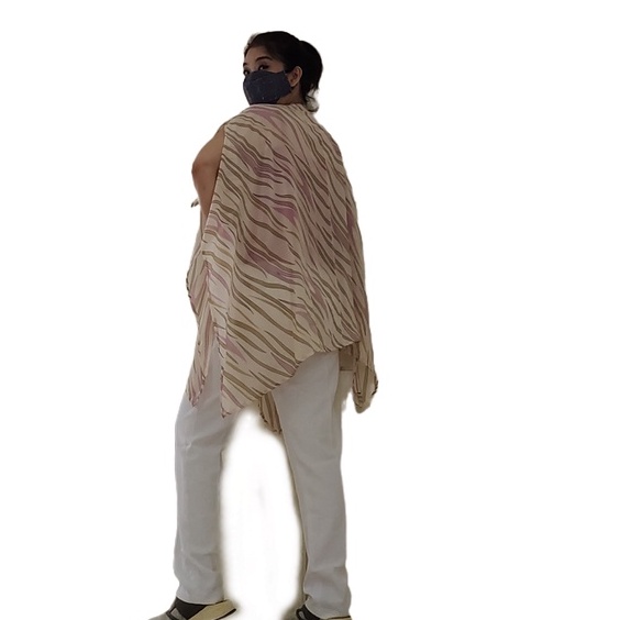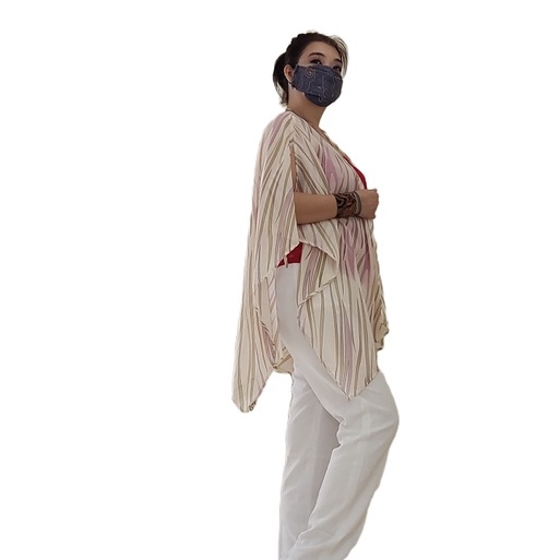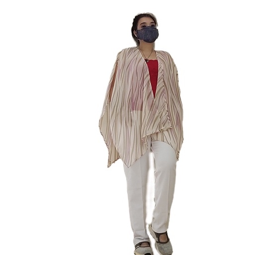 Outer Lengan Kelelawar Batwing Loose Gesyal Luaran Sifon Motif Batik Krem Gading